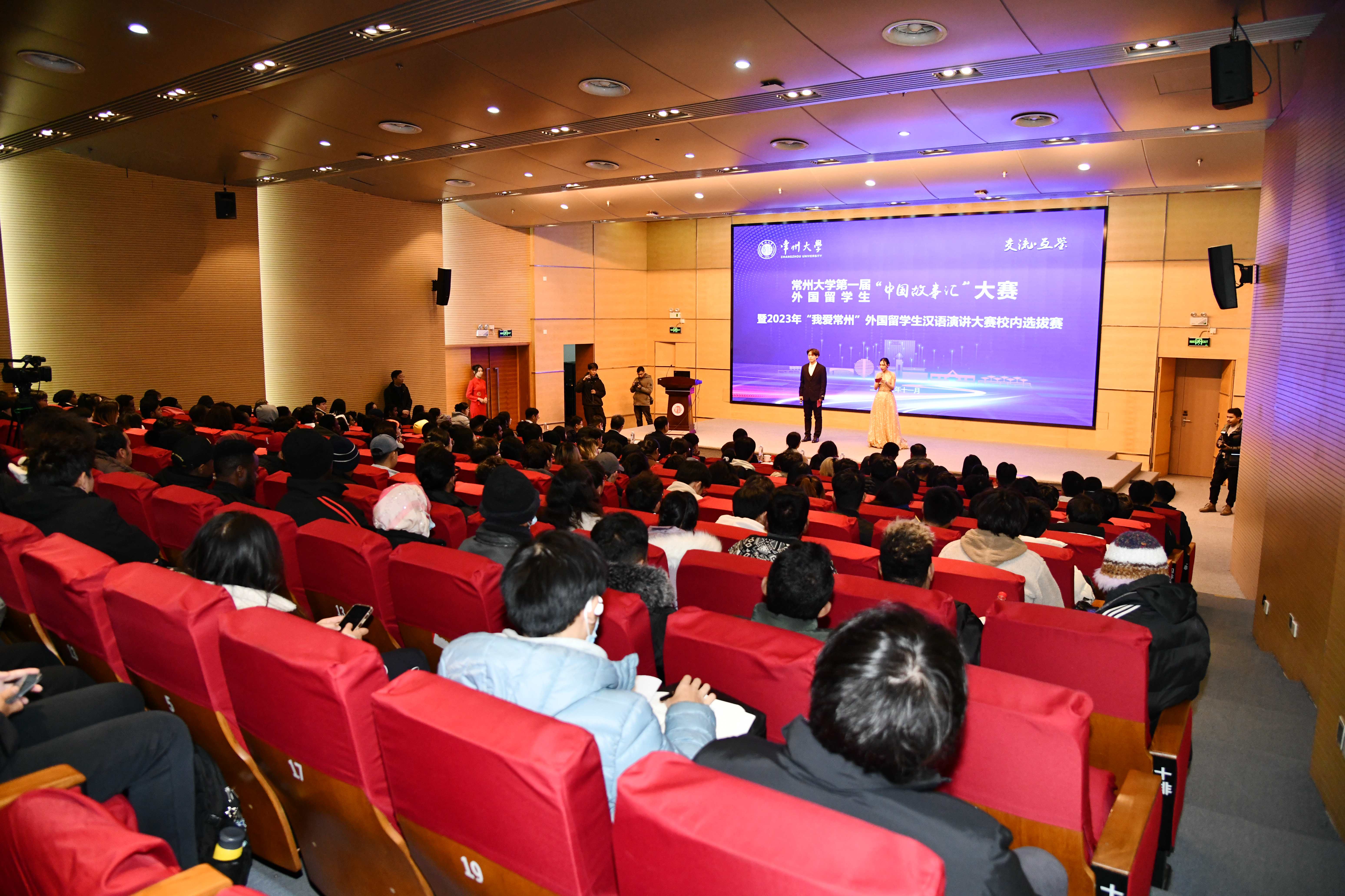 11月30日,我校第一届外国留学生“中国故事汇”大赛暨2023年“我爱常州”外国留学生汉语演讲大赛校内选拔赛在科教城校区文彰楼报告厅举行。常州市人民政府外事办公室涉外管理处处长张国俊,常州市教育局办公室副主任蒋玥,我校党委常委、宣传部部长薛冰出席活动,相关职能部门负责人和周有光文学院教师应邀担任评委,相关学院学工负责人和200余名中外大学生参加比赛。