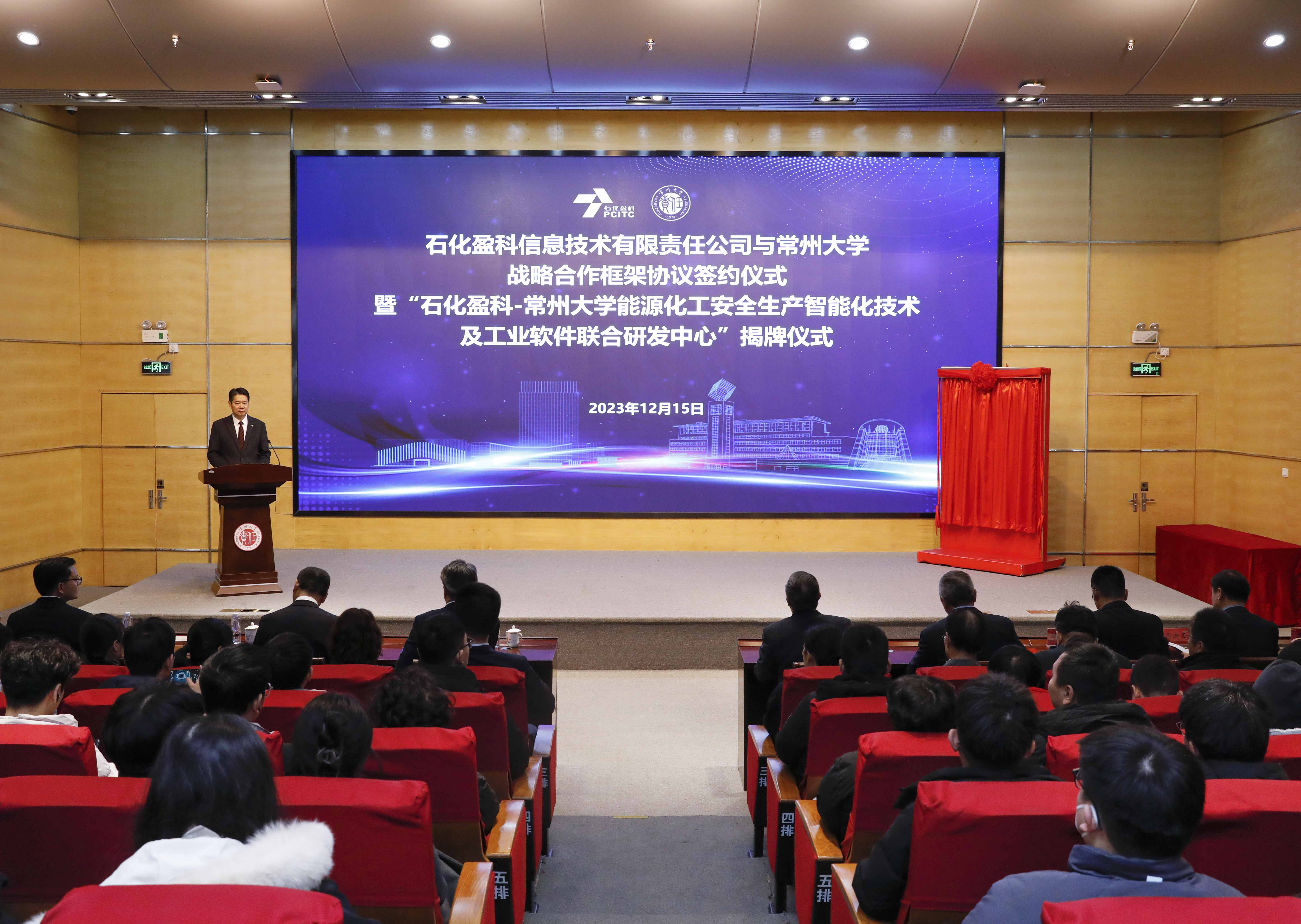 战略合作框架协议签约仪式暨“石化盈科-常州大学能源化工安全生产智能化技术及工业软件联合研发中心”揭牌仪式在我校举行