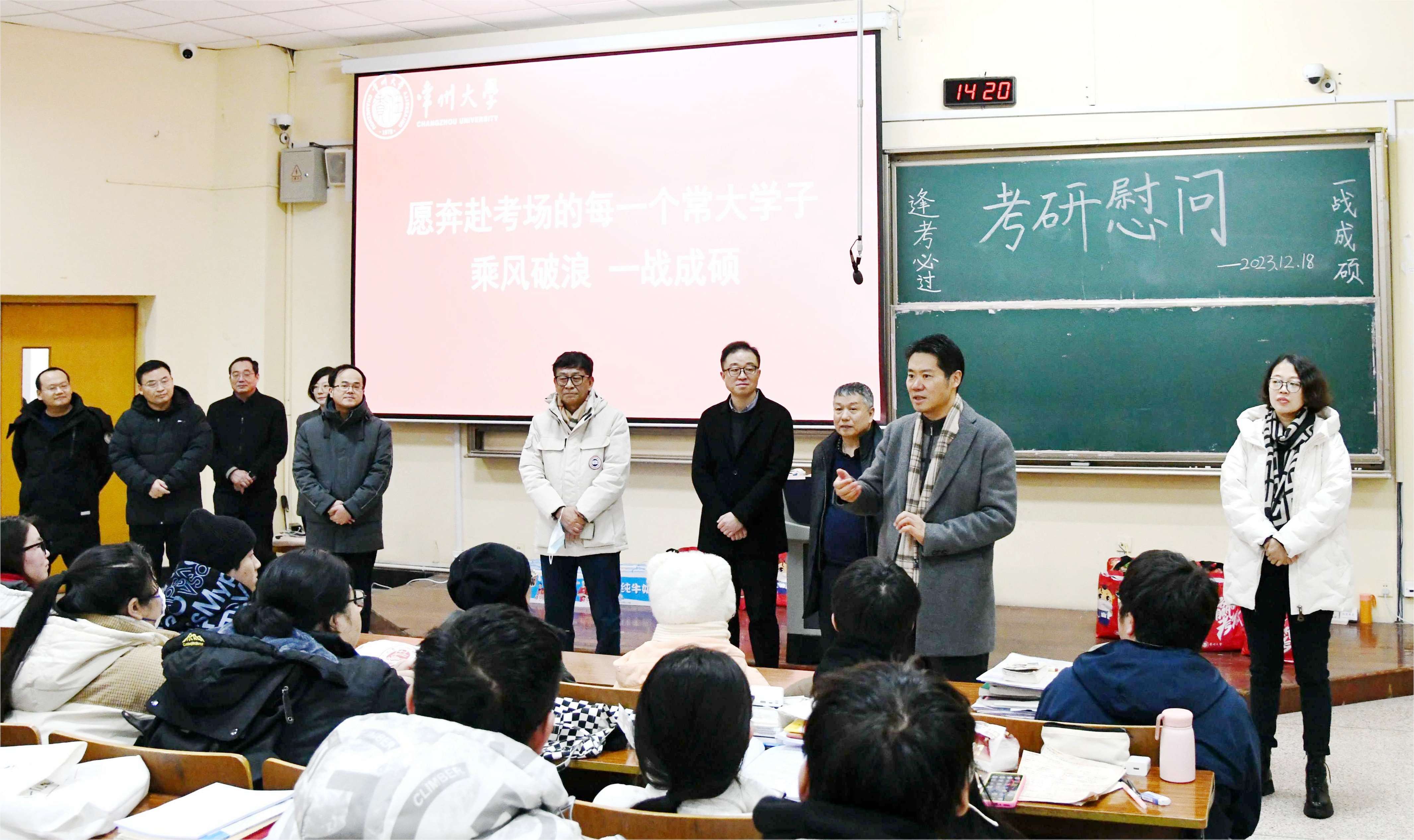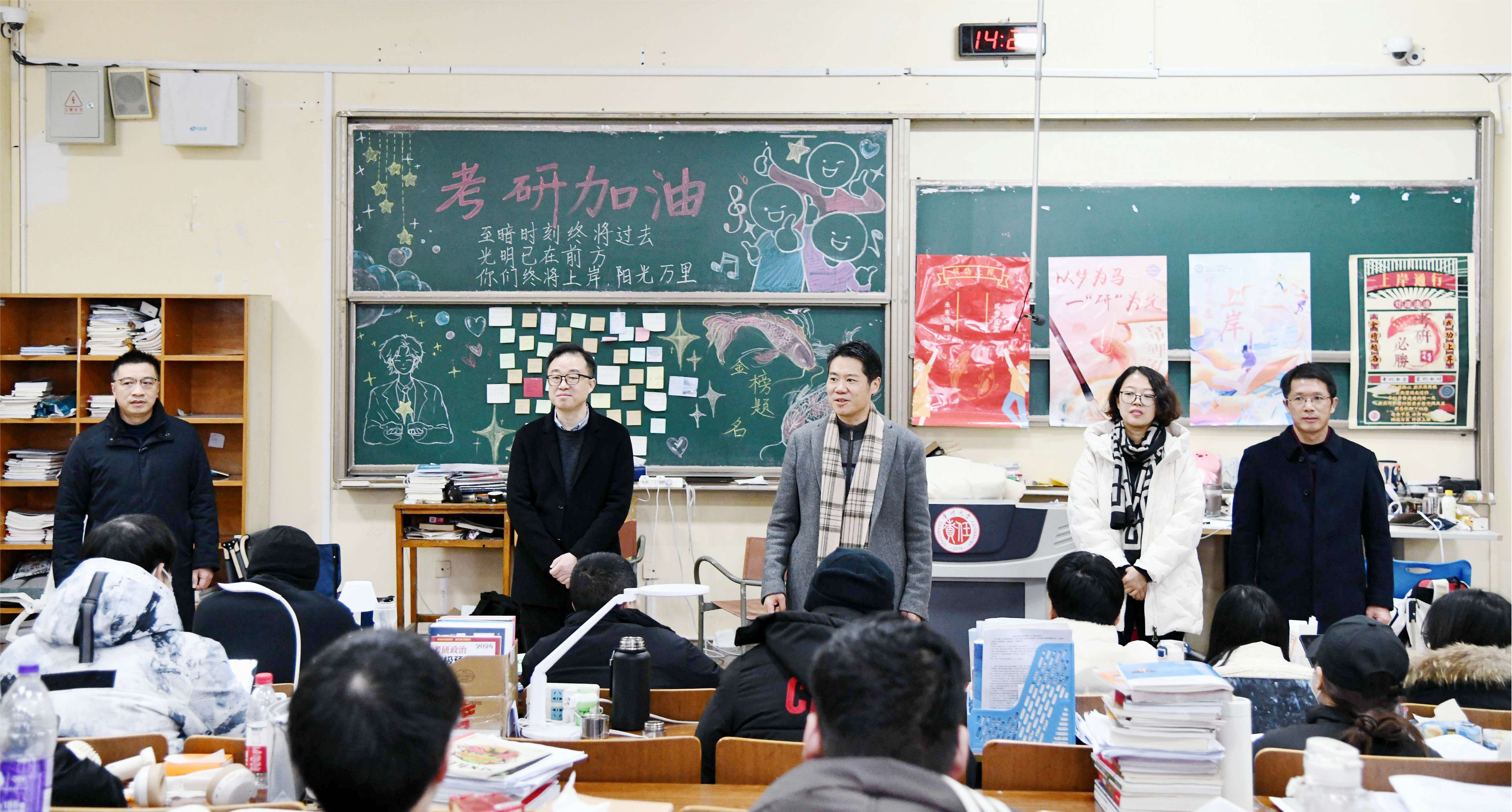 在2024年全国硕士研究生入学考试即将到来之际,为鼓舞学生考研士气,增强学生备考信心,12月18日下午,党委副书记、校长陈海群,党委常委、副校长周刚在两校区考研专用教室看望慰问考研学生。教务处、研工部、学工处、西太湖校区、后服中心等职能部门负责人、各学院相关负责人参加慰问活动。