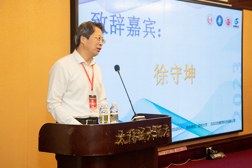 徐守坤在致辞中指出,创新创业教育是高等教育的重要组成部分,对于培养学生的创新精神、创业意识和创业能力具有重要意义。常州大学高度重视创新创业教育工作,将创新创业教育确定为三大办学特色之一,结合办学定位、立足办学实际、依托地方产业优势,学校不断拓宽创新创业教育渠道,走出了一条特色发展之路。学校秉承“三全四融合”双创育人理念,完善机制保障,汇聚培养合力,建立“三层级、四协同、五结合”双创工作机制,经过多年探索与实践,创新创业教育改革取得了重要成效,2017年入选全国深化创新创业教育改革示范高校,2019年获批江苏省首批大学生创新创业实践教育中心,2022年学校获批为国家级创新创业学院建设单位,学校荣获“互联网+”大赛国赛金奖7项,荣获“挑战杯”系列竞赛国赛特等奖 (金奖)10项,3次捧得“优胜杯”。他希望通过培训,进一步提升高校教师的创新创业教育教学能力和创新创业大赛指导水平,促进高校建成一支高素质、多元化的创新创业教育专兼职队伍和大赛指导教师团队。随后,徐守坤做《新时代地方高校科创人才培养探索与实践》主题讲座,详细介绍了创新创业理论教育的历史变迁、科创人才培养的内在逻辑及常大探索。