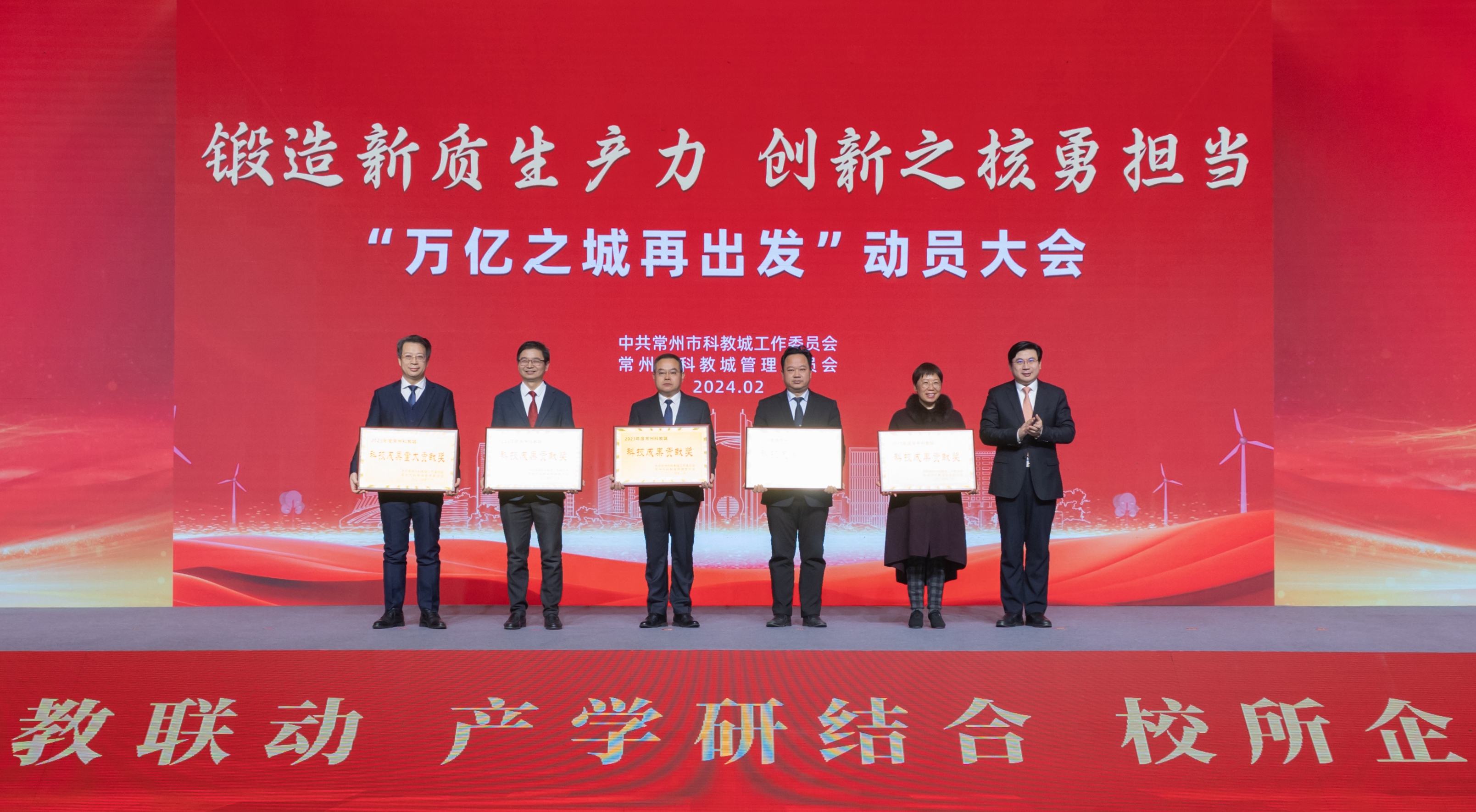 春潮澎湃启新程,扬帆奋进正当时。2月26日上午,常州科教城召开“锻造新质生产力 创新之核勇担当”——“万亿之城再出发”动员大会,市委常委、武进区委书记、科教城党工委书记乔俊杰出席会议并讲话,市政协副主席、科教城管委会主任祝正庆主持大会。我校党委书记徐守坤,党委常委、副校长李亚飞出席会议。