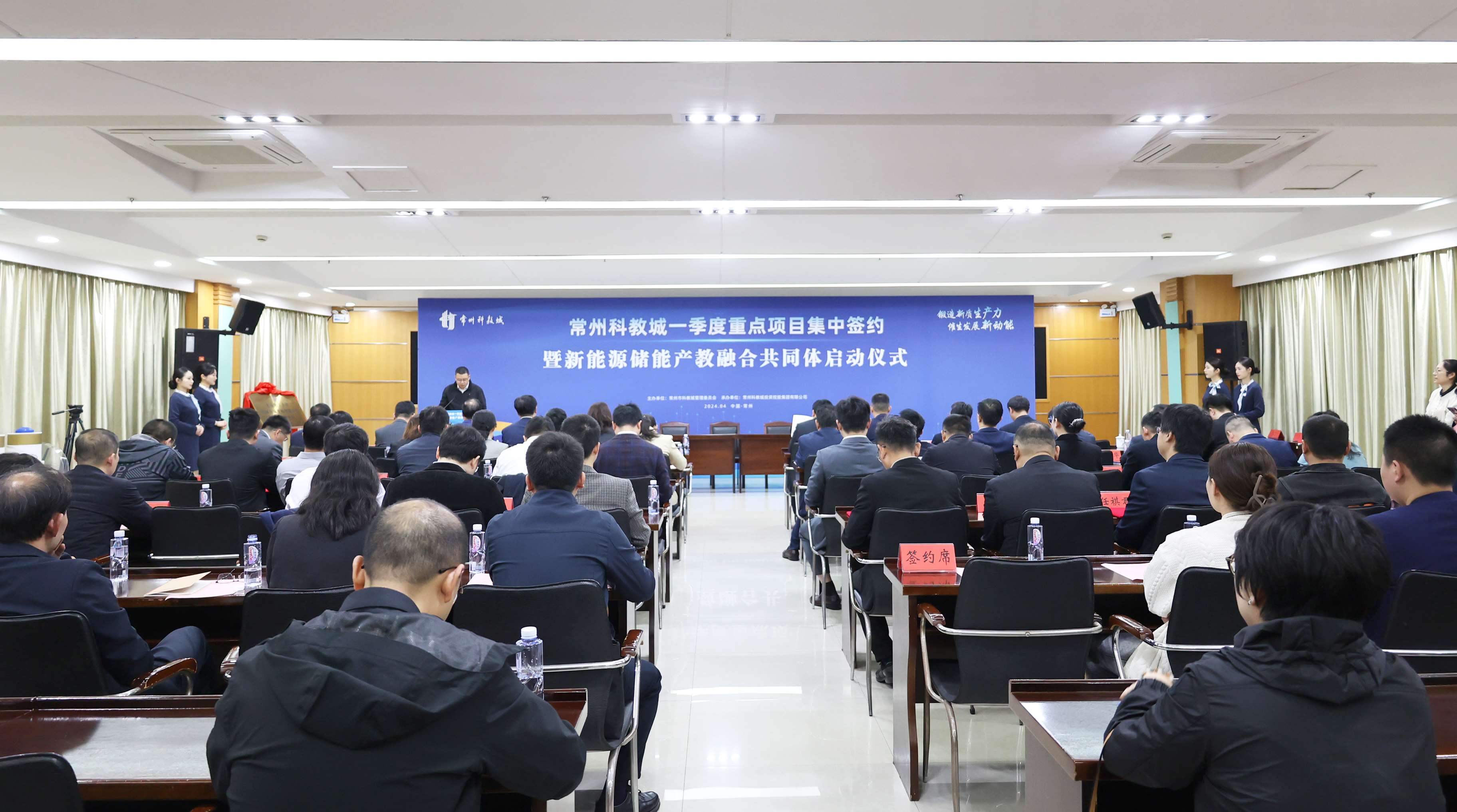 4月2日上午,由我校牵头成立的新能源储能产教融合共同体启动仪式在常州科教城举行。常州市委常委、科教城党工委书记乔俊杰,常州大学党委常委、副校长李忠玉,常州新能源集团有限公司总经理刘龙才,常州工程职业技术学院校长基国林,江苏省特检院常州分院副院长李德锋,中盐金坛盐化有限责任公司副总工程师王国华,万帮数字能源股份有限公司副总裁郑隽一,常州绿色能源有限公司董事长卢意等相关领导出席活动,常州市政协副主席、科教城管委会主任祝正庆主持活动。