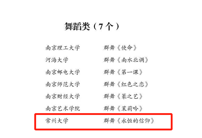 近日,教育部发布全国第七届大学生艺术展演活动(以下简称“大艺展”)现场展演名单,由校团委牵头编创的江苏省第七届大学生艺术展演舞蹈甲组(非专业组)特等奖作品《永恒的信仰》成功入选,将受邀代表江苏省登上全国大艺展现场展演的舞台,与清华大学、浙江大学、复旦大学等高校同台竞技。这是我校首次参加国赛并一举入选!