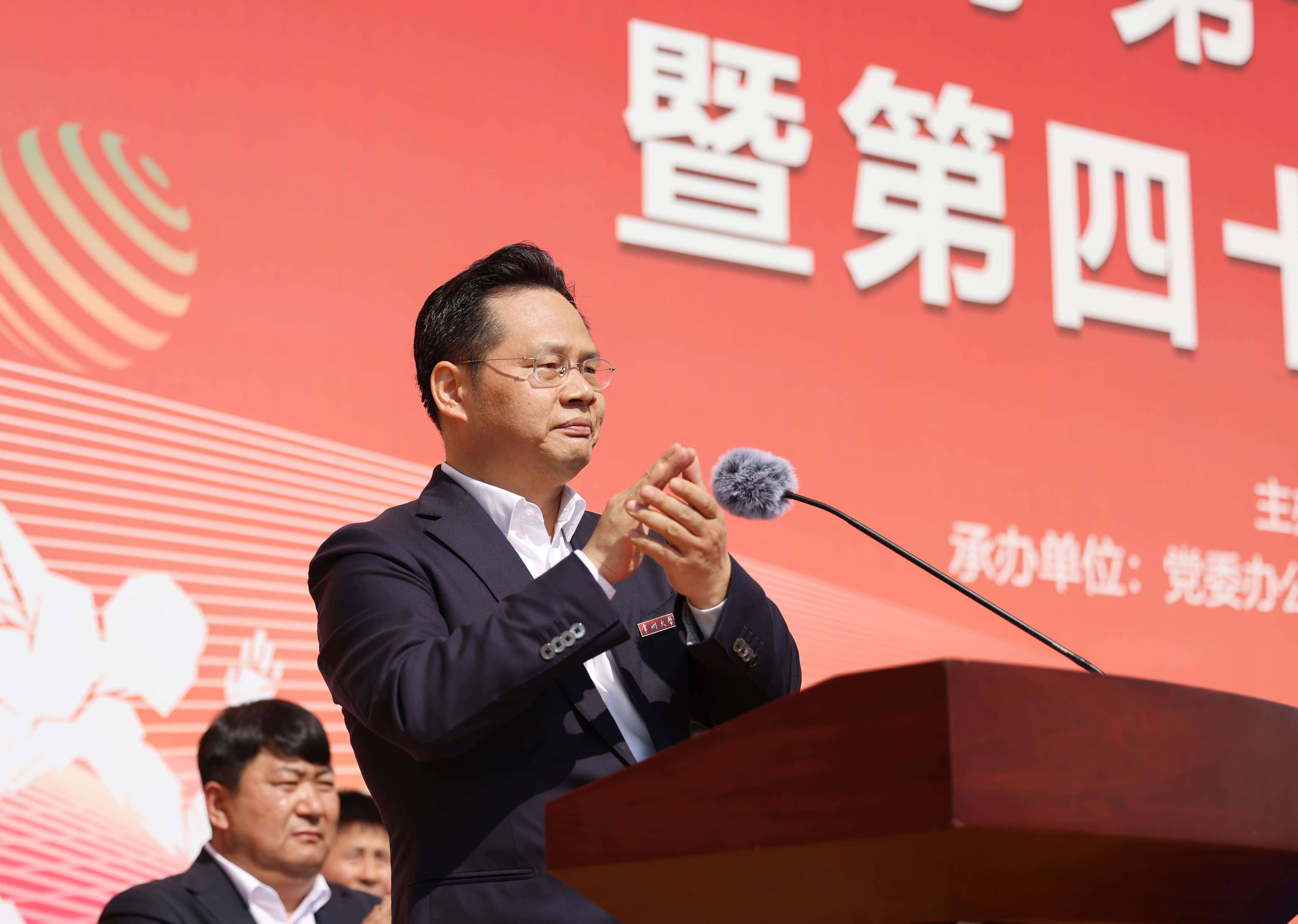 杨琳致开幕辞。她指出,体育承载着国家强盛、民族振兴的梦想,体育强则中国强,国运兴则体育兴。体育从来不止于赛场,还是大众的参与、情感的激发、梦想的集聚。一直以来,学校高度重视体育教学与运动竞赛事业的发展,在体育强国和全民健身浪潮中,与全国各类体育活动如火如荼地开展相呼应,学校也成功入选首批“全国健康学校建设单位”,学校运动健儿在龙舟、舞龙、田径、游泳等专业性赛事中不断刷新纪录,越来越多的同学走下网络、走出宿舍、走向操场,变成了“运动达人”,真正践行了“常大的操场,就是常大的课堂”的体育育人理念。她希望全校师生以本次运动会为指引,在今后的学习生活中,把参加体育锻炼作为一种兴趣和习惯,在“野蛮其体魄”中享受乐趣、增强体质、健全人格、锤炼意志,做一个心中有梦想、行动有力量的新时代常大人!