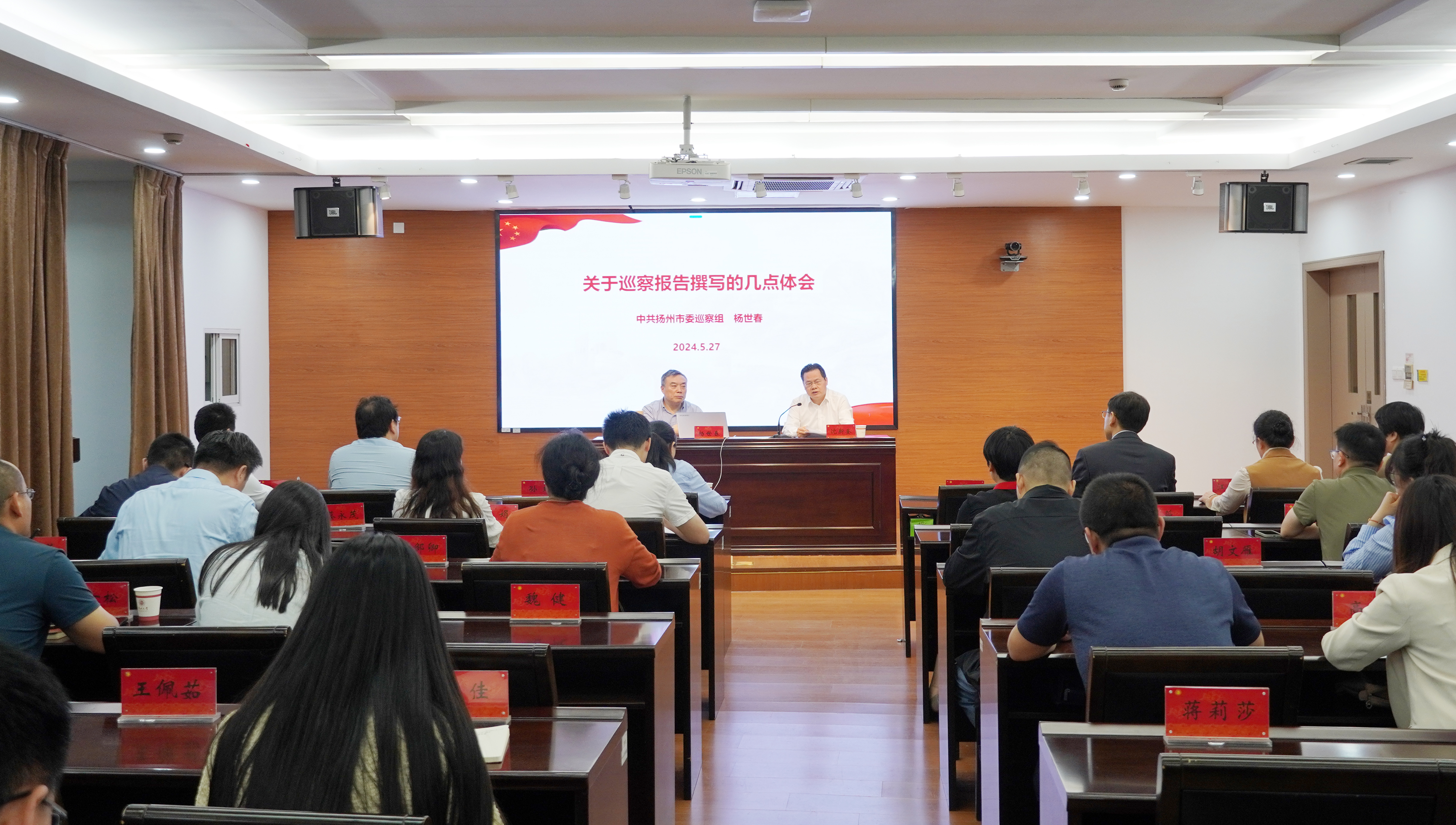 扬州市委巡察组组长杨世春围绕巡察报告的目的和作用、表述中防止的问题、重点查找了解问题、提炼问题等方面就巡察报告撰写进行专题辅导。