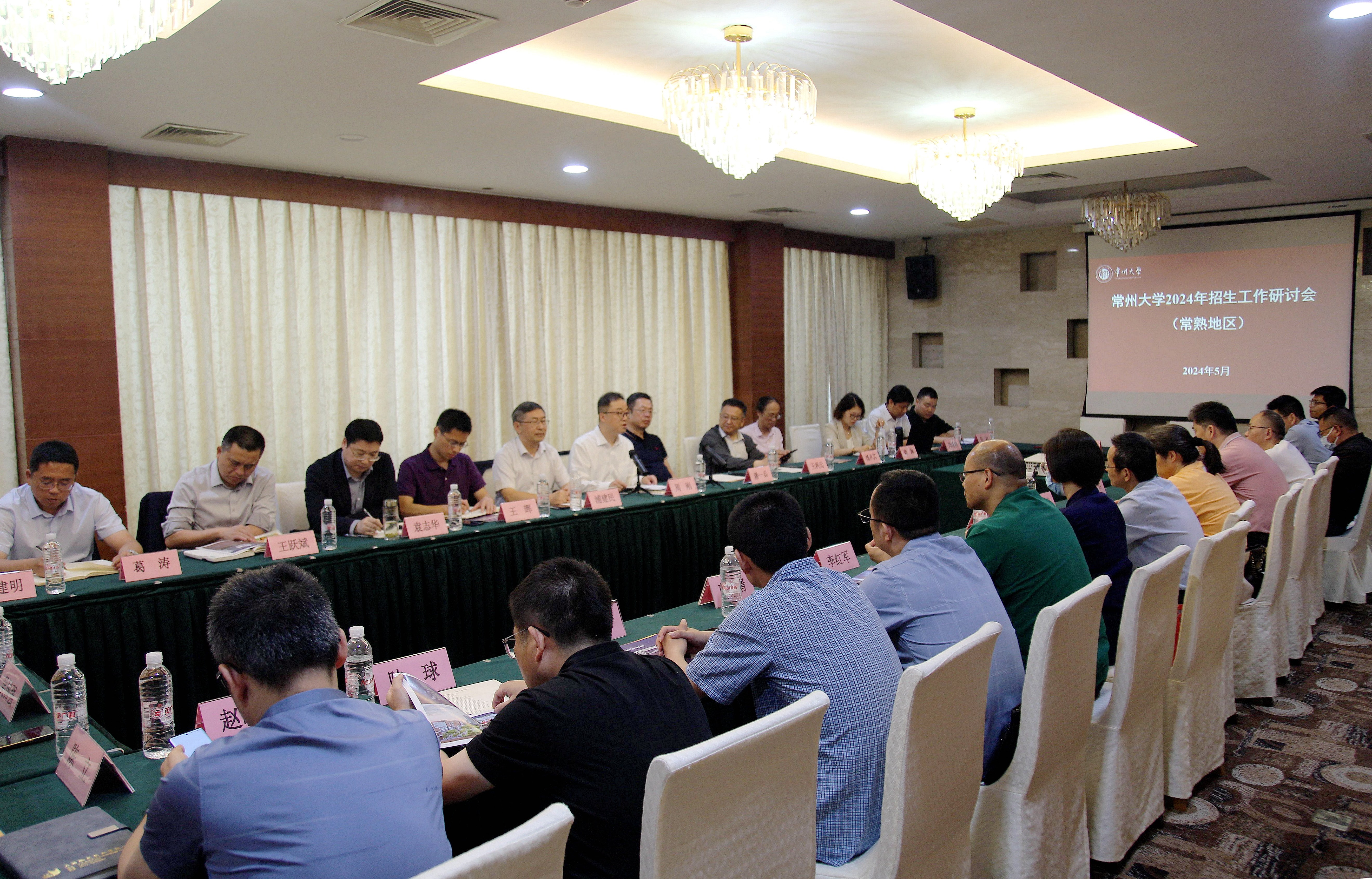 为进一步汇聚招生力量,创新招生思路,更好地推动学校招生工作落实落细,5月28日下午,学校赴常熟地区开展招生工作研讨会。常熟市教育局教育督导室副主任潘一兵、招考办主任王晖,党委常委、副校长周刚出席会议。我校教育发展基金会、学工处、机械学院相关负责人,以及常熟地区8所中学校长、分管高三的副校长、高三年级主任、常熟校友会负责人参加会议。