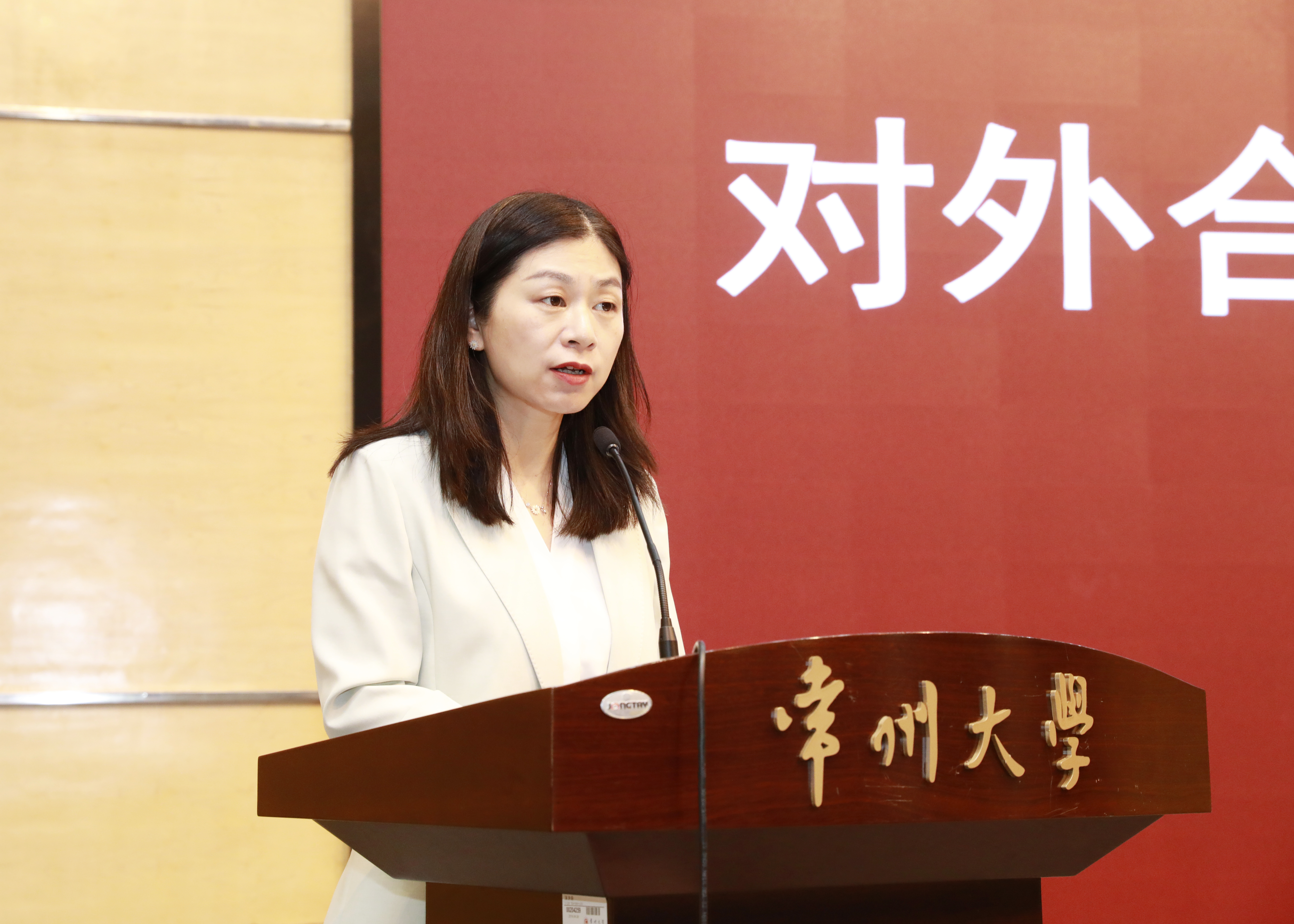 王建浦介绍了常州大学来华留学教育的亮点成绩和特色优势,鼓励留学生深入了解常州中吴文化和新能源汽车产业,了解常州这座城市,为促进中外民心相通发挥积极作用。施蕴玉介绍了“悦读江苏”活动的进展情况,希望留学生们通过不同视角讲述真实立体、生动可爱、内涵丰富的“常州故事”,让更多人了解江苏的文化底蕴。南京林业大学国际教育学院副院长孟晓轲作为教师代表、江苏大学俄罗斯籍硕士研究生妙妙作为留学生代表分别发言。