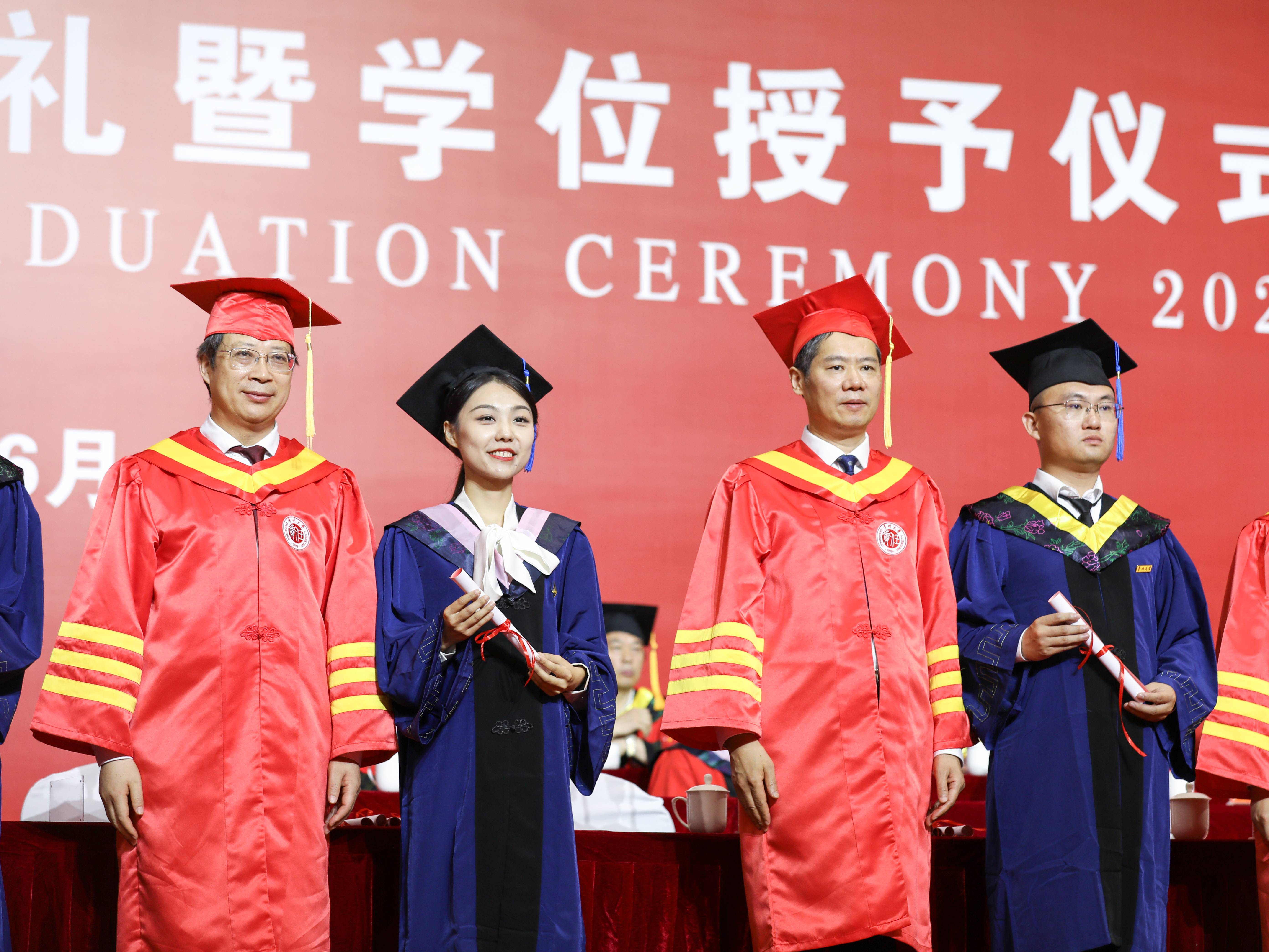 校领导为2024届省优秀毕业生代表、校优秀毕业生研究生代表、校本科生优秀毕业生标兵和优秀毕业生代表颁发证书,并为2024届毕业研究生代表、本科生代表拨正流苏、授予学位。