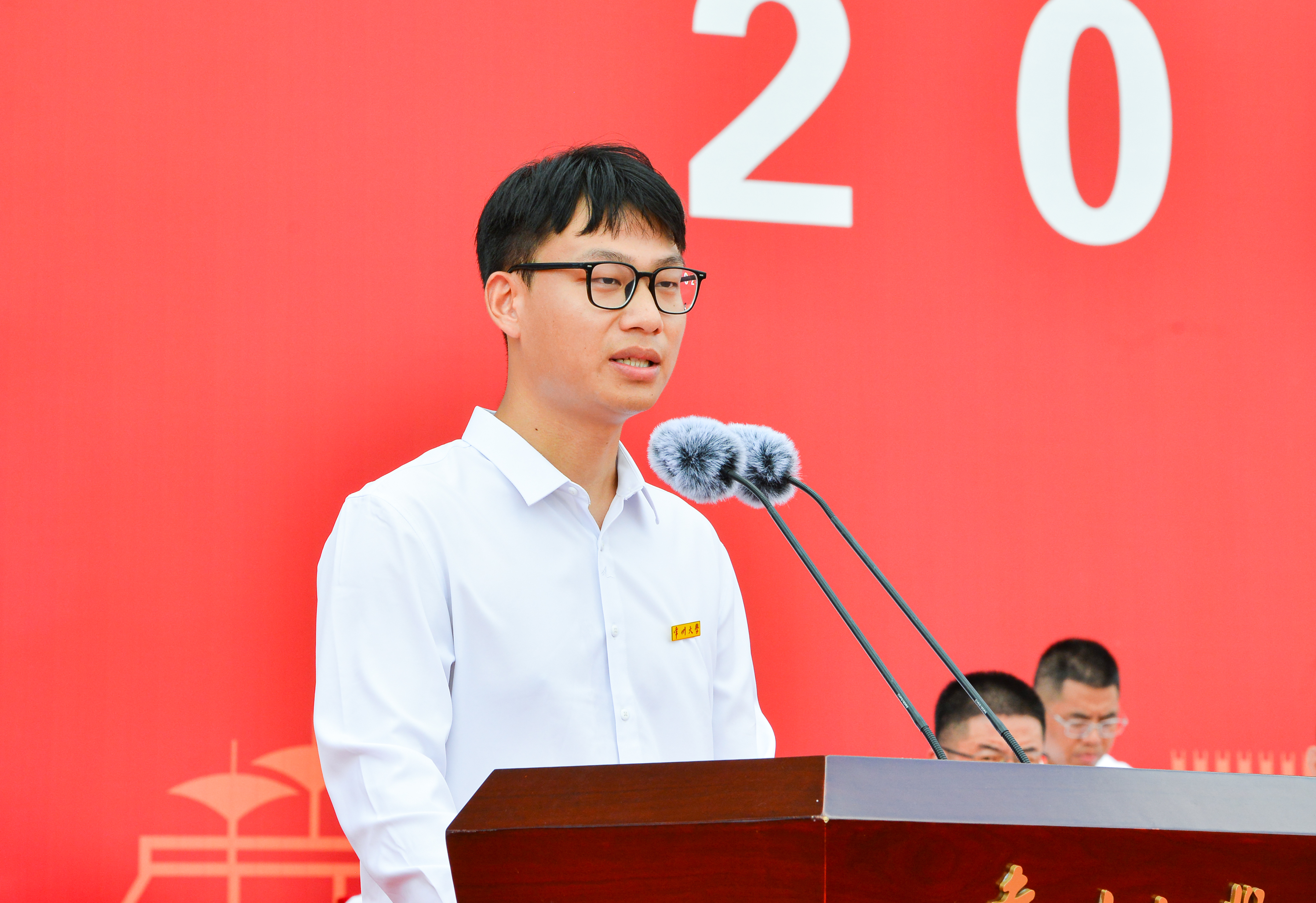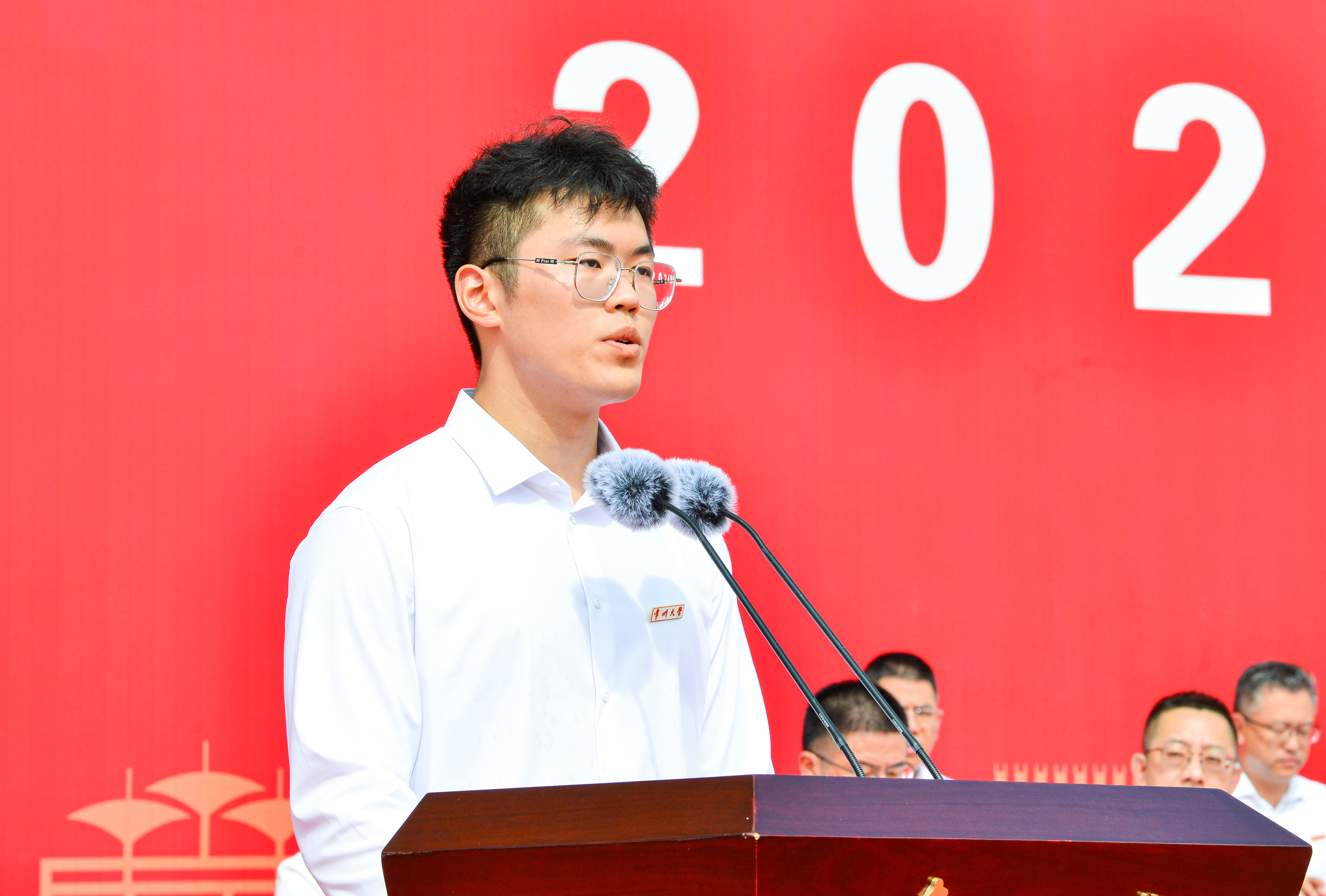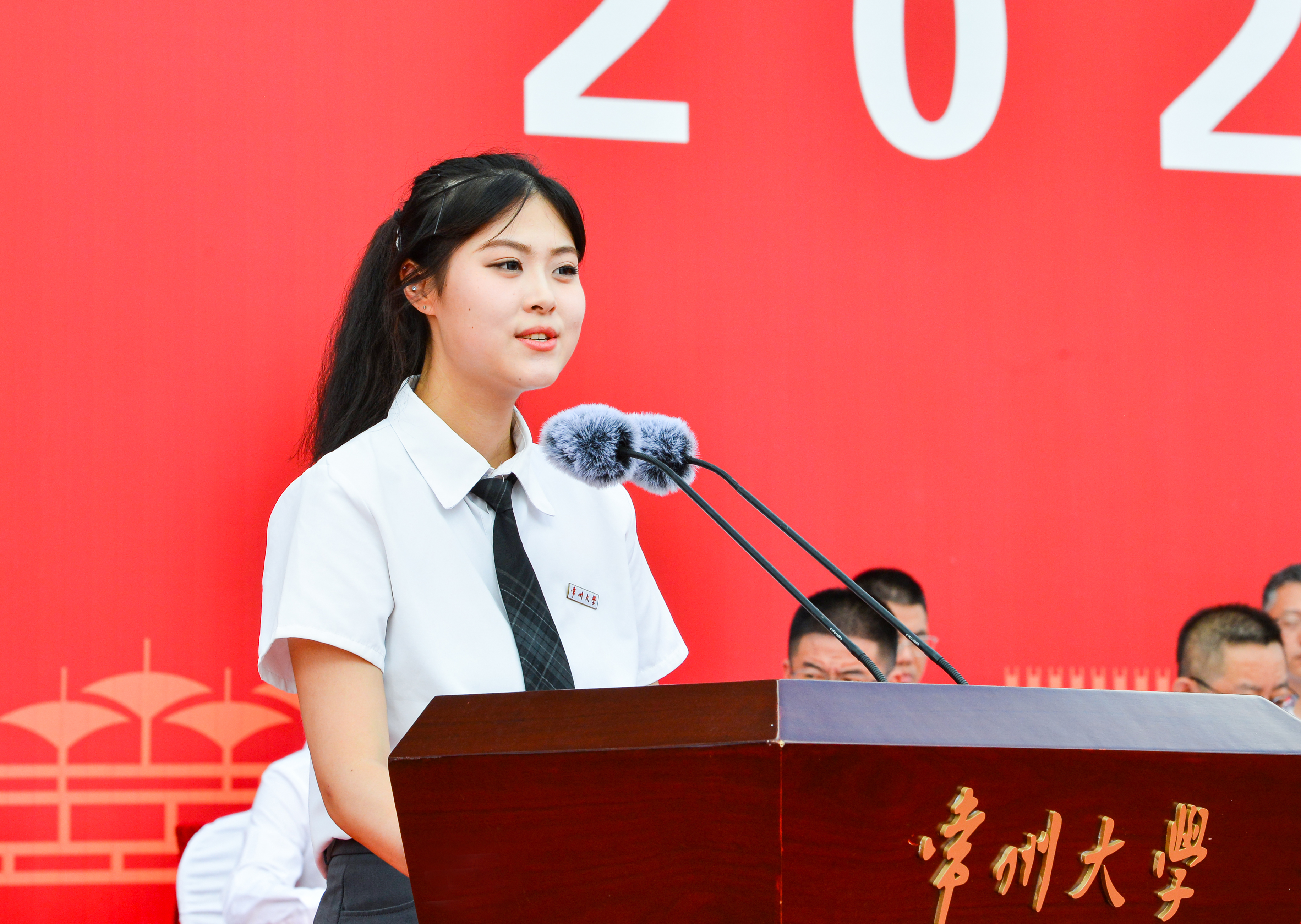 开学典礼前,2024级全体新生观看口述校史系列短片第一集《苦战》,重温了学校在艰辛中成立、在奋斗中前进的光辉历程。在庄严雄壮的国歌声中,开学典礼正式拉开帷幕。本科生新生代表、高年级学生代表分别发言,新生代表畅谈对未来的无限憧憬,号召全体新同学珍惜时光,奋勇拼搏以实现自身价值;高年级学生代表分享了自己学习生涯中的宝贵经历,勉励全体新生在成长的道路上持之以恒,久久为功。国家级青年人才项目入选者、材料科学与工程学院周子尧教授作为教师代表发言,他分享了自己的求学故事,希望新生志存高远、脚踏实地、守正创新,在常大找到属于自己的舞台,为民族复兴贡献自己的智慧和力量。