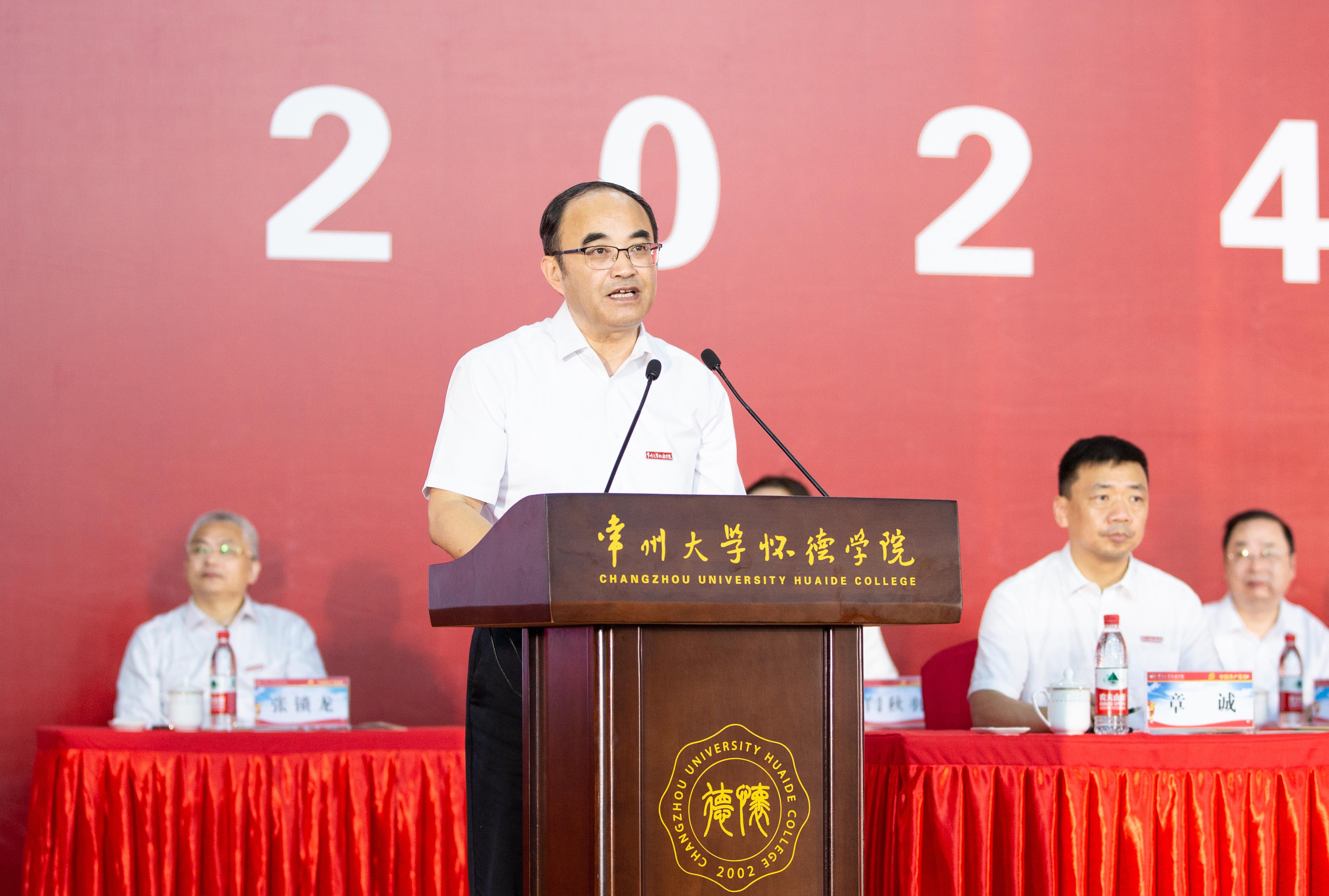 9月14日上午,常州大学怀德学院2024级新生开学典礼在靖江校区体育馆举行。常州大学党委常委、副校长彭明国,怀德学院全体领导出席典礼。学院各系部负责人、教师代表、新生辅导员、2024级全体新生参加典礼。院党委书记李伟明主持开学典礼。