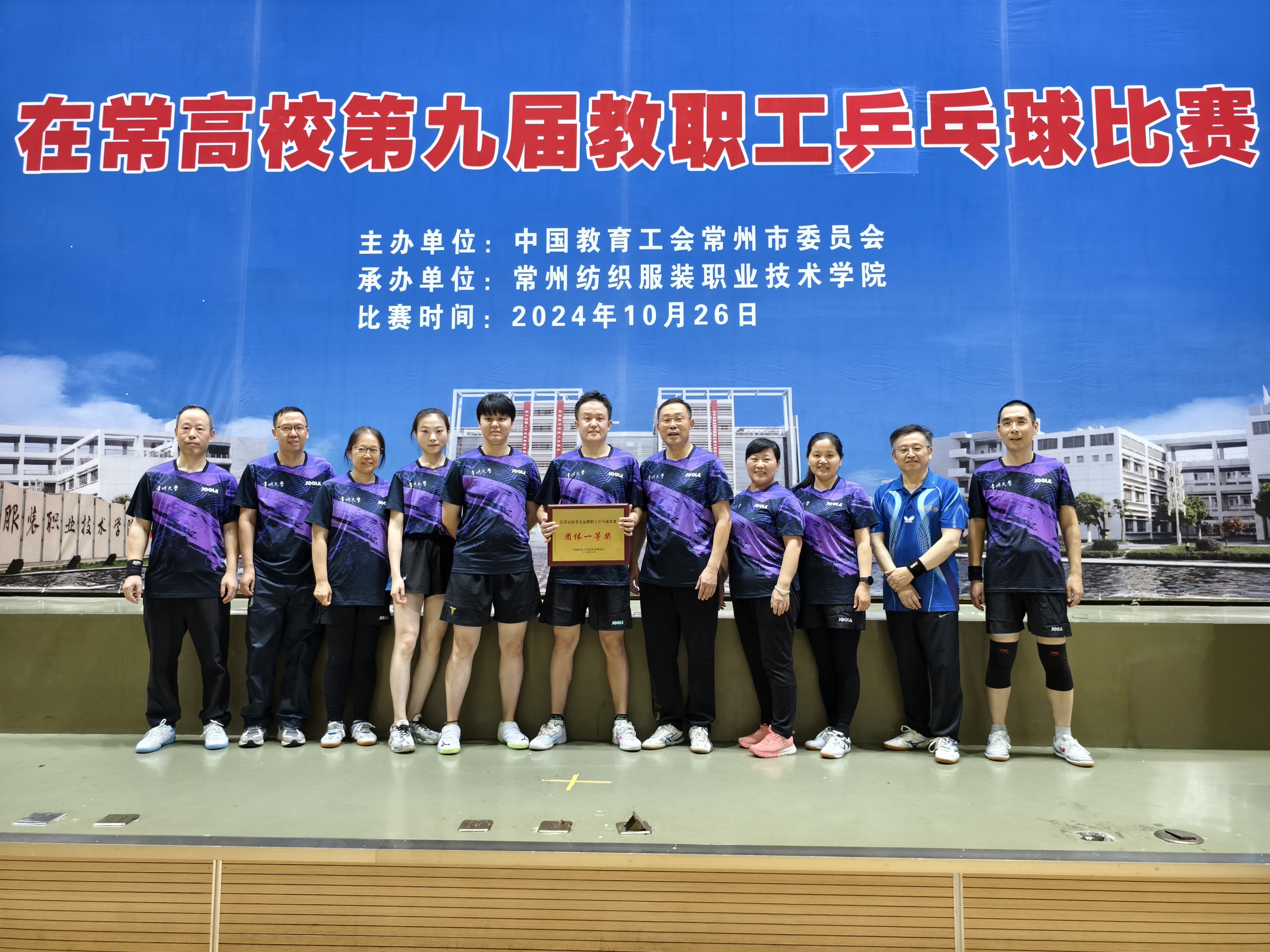10月26日,第九届在常高校教职工乒乓球比赛在常州纺织服装职业技术学院体育馆拉开帷幕,此次赛事由常州市教育工会主办,在常的12所高校共144名队员组成代表队参与竞技,我校共派出13名教职工参与比赛。经过紧张激烈的比拼,我校代表队脱颖而出,惜败南京航空航天大学(天目湖校区)获得了亚军,获团体一等奖。