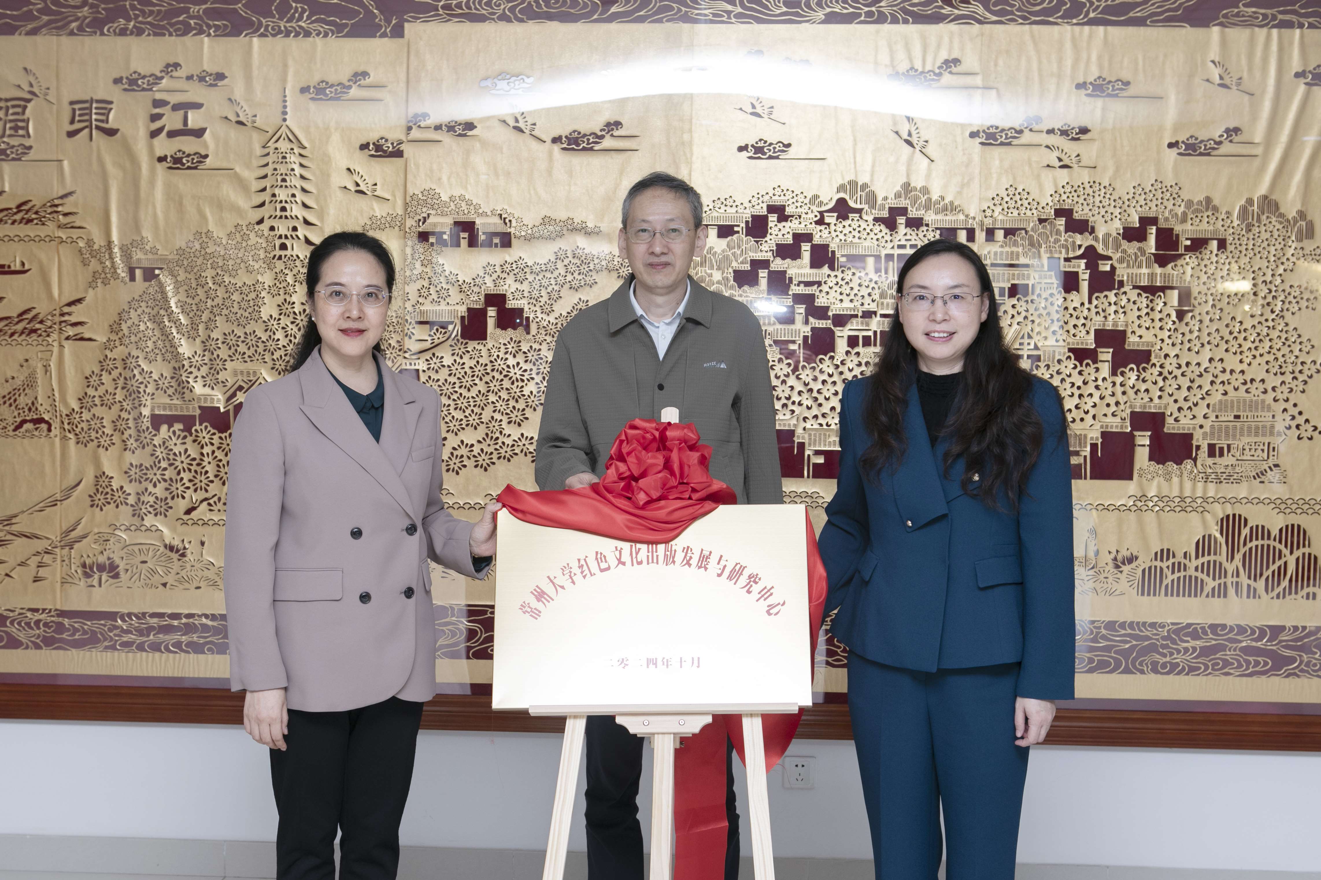 10月30日,常州大学红色文化出版发展与研究中心共建签约揭牌仪式在常州市金坛区政府举行。南京出版传媒集团(南京出版社)党委书记、董事长、总编辑项晓宁,常州大学党委常委、副校长杨琳,金坛区委宣传部副部长、文明办主任王珊,常州大学红色文化研究院(中共党史党建研究院)院长、首席专家朱成山等领导出席仪式。