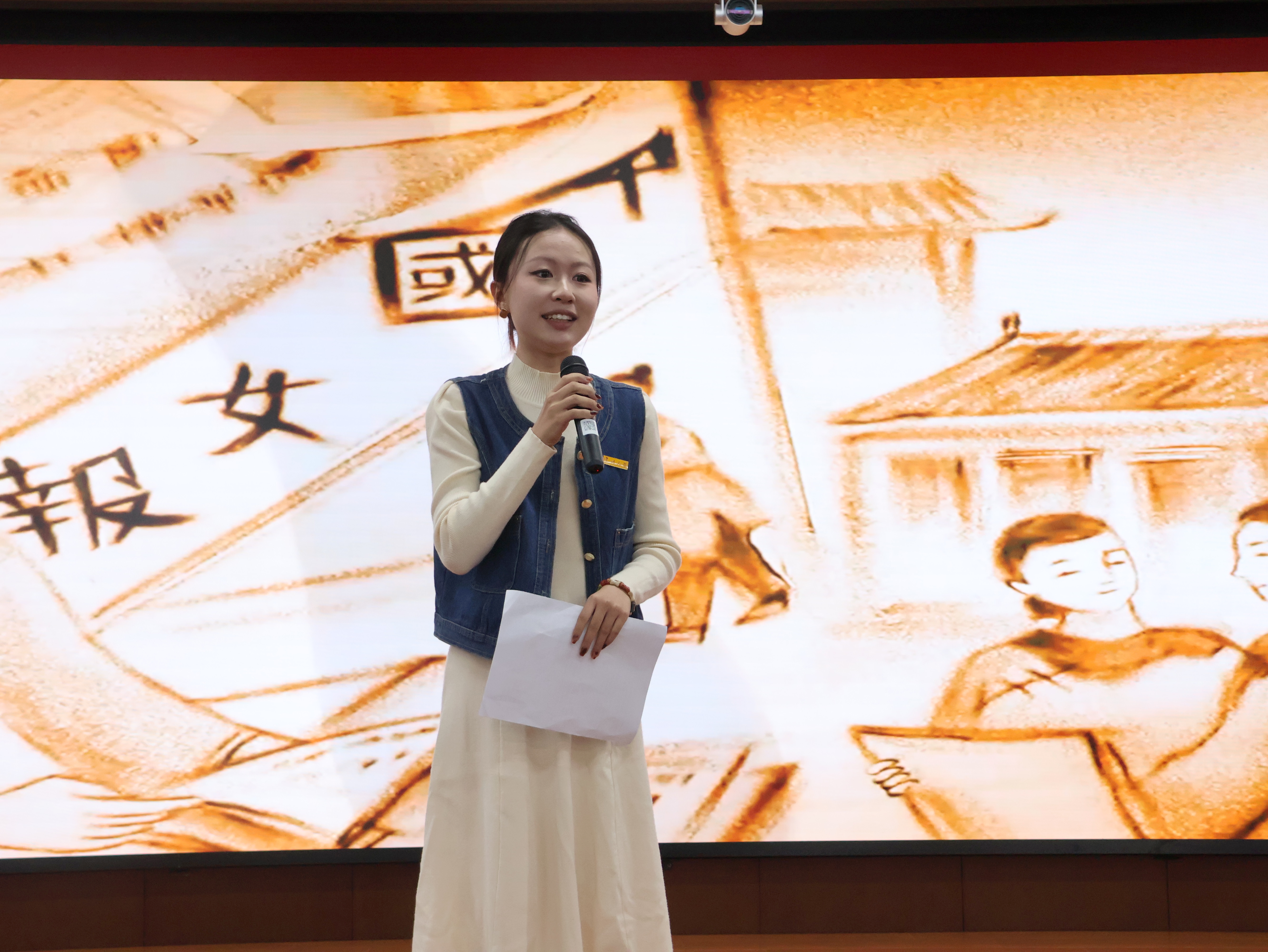 学生盛钰馨朗诵了第十三届读书节优秀作品《她说》,呼吁新时代青年学子学习坚韧不拔,努力奋斗的精神品质。
