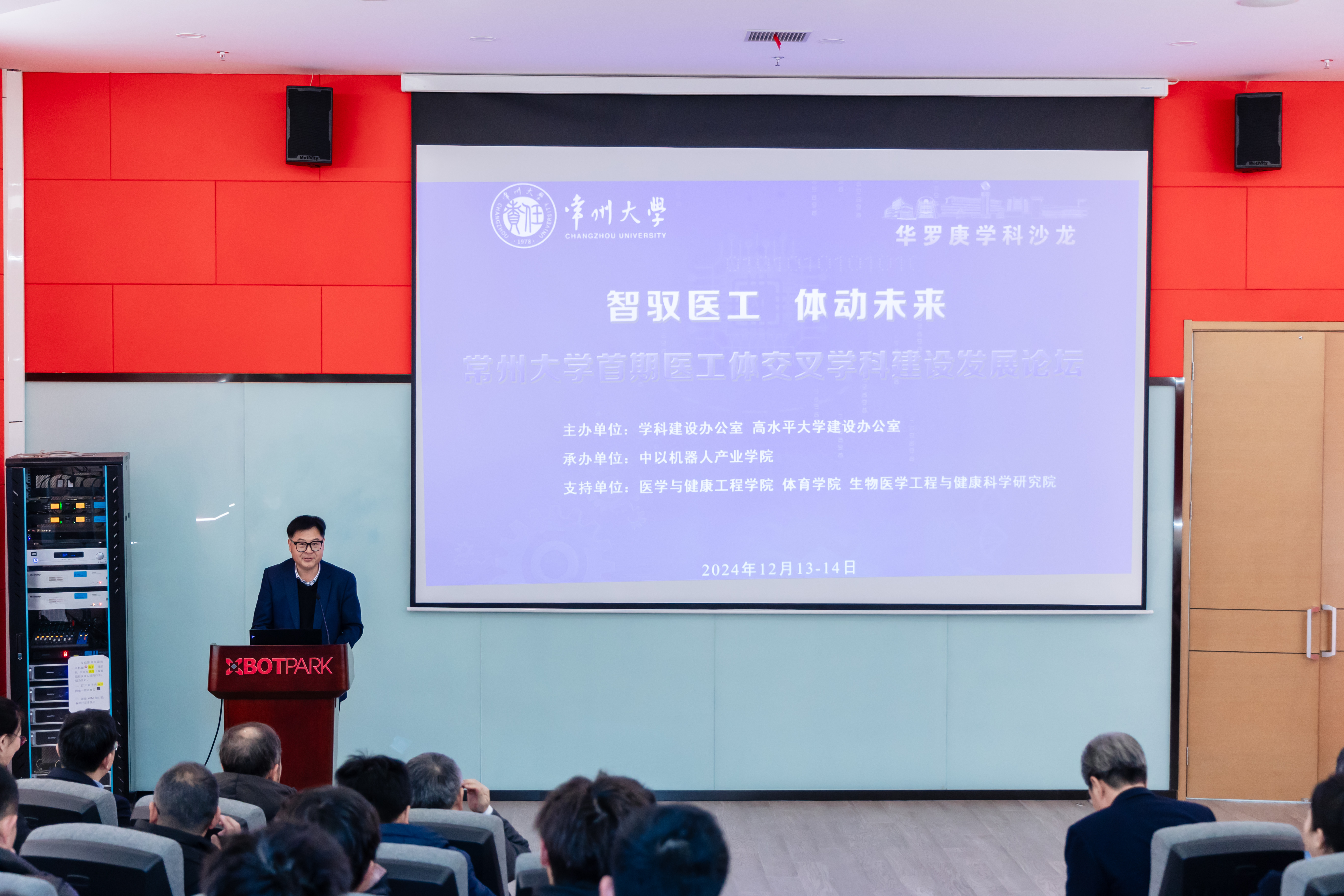 12月14日,常州大学“华罗庚学科沙龙”暨首期医工体交叉学科建设发展论坛在机器人学院举行。本次活动贯彻落实党的二十届三中全会和全国教育大会精神,聚焦青年学科拔尖人才培养,着眼医工体学科交叉,为我校交叉学科发展探索新路径。国家特聘专家、国家杰青、美国医学与生物工程院会士、国家重大人才工程A类入选者、南京航空航天大学多功能轻量化材料与结构工信部重点实验室创始主任、原西安交通大学副校长卢天健教授,教育部重大人才计划入选者、南京体育学院党委常委、副校长陈爱国教授出席论坛并作主旨报告。教育部装备创新团队负责人、科技部中英人工智能联合实验室主任、江苏省333工程第一层次人才、江南大学研究生院院长吴小俊教授,国家级高层次青年人才、江苏省优青东南大学王翔宇教授等出席分论坛并作报告。党委常委、副校长李忠玉,学科办、医工学院、体育学院、机器人学院相关负责人、教师和学生等近200人参加活动,机器人学院院长徐淑玲主持论坛。