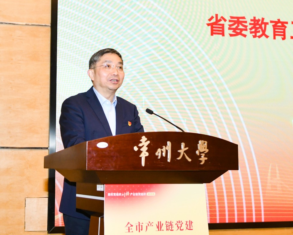 12月30日下午,“高校党组织对接产业链党组织”常州专场暨常州市产业链党建校地共建活动在我校科教城校区文彰楼报告厅举行。教育部思想政治工作司司长魏士强作视频讲话,省委教育工委书记、省教育厅厅长、党组书记江涌出席会议并讲话,市委常委、组织部部长陈翔到会致辞,省教育厅组织处处长、一级调研员陈艳,省教育厅科学技术与产业处二级调研员张海珠,省高校科技发展中心副主任俞宙,全国高校“双带头人”教师党支部书记“强国行”专项行动办公室常务主任李继红,全国高校“双带头人”教师党支部书记“强国行”专项行动办公室副主任李喆,我校党委书记徐守坤、党委副书记黄海燕出席活动,其它10家在常高校党委书记及组织人事部门负责人,常州市、区有关部门领导、重点产业链党委书记及链上企业代表参加活动。副校长晏成林主持活动。