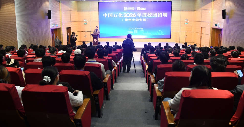 10月22日,中国石油化工集团有限公司(以下简称“中国石化”)来校举办2026年度校园招聘宣讲活动。扬子石化、高桥石化、石油工程建设公司、南化公司、镇海炼化、济南炼化、天然气分公司、经纬公司、江汉油田、南京工程公司、上海海洋石油局、华东石油局等所属36家企业参与招聘活动。常州大学党委常委、副校长周刚出席活动,2026届毕业生代表、相关学院学工负责人和毕业班辅导员等200余人参加宣讲会。宣讲会同步进行线上直播,吸引2000余人次在线观看。