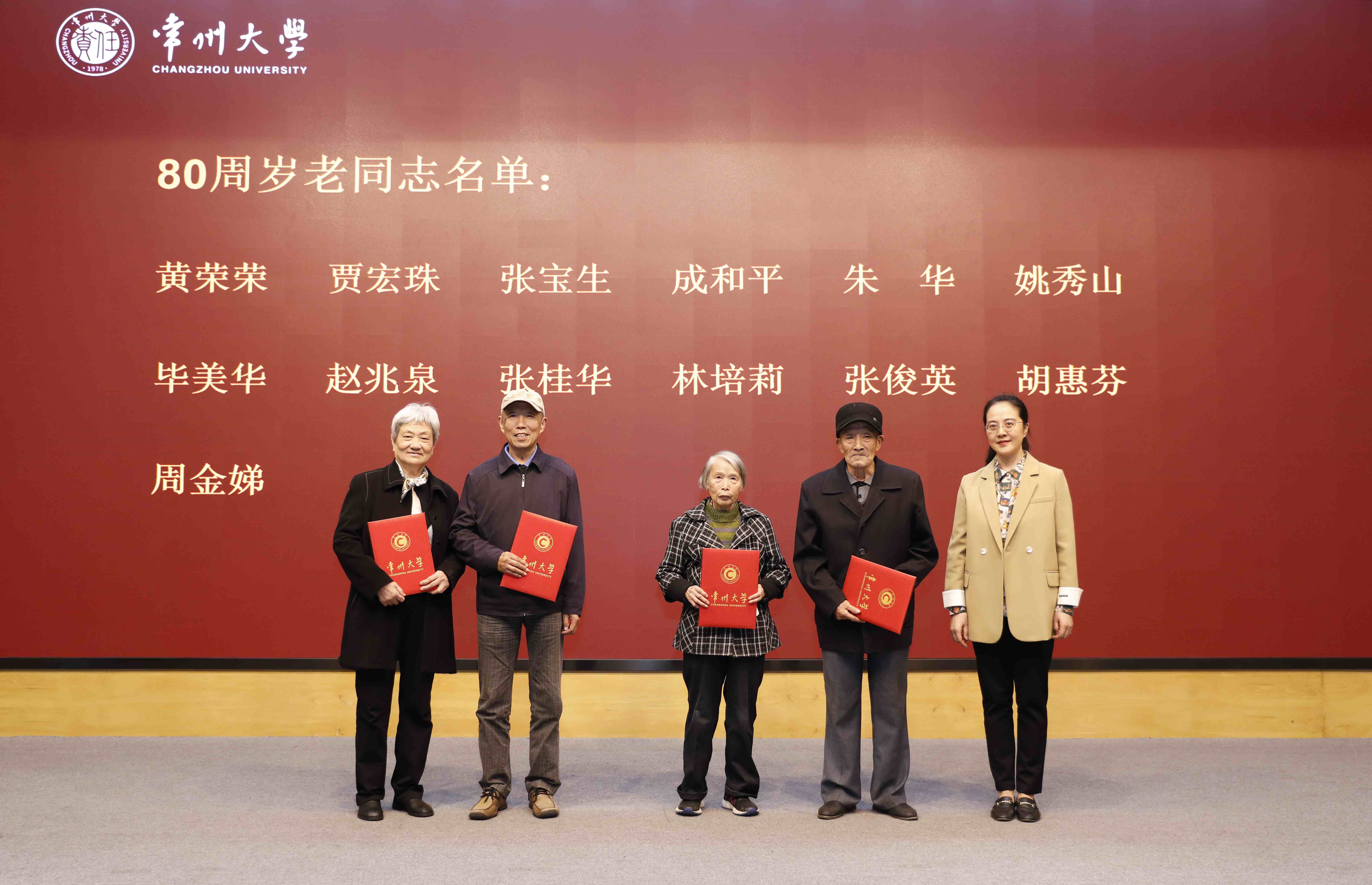 联欢会为今年60、70、80、90周岁的老寿星集体祝寿,为今年结婚30、40、50、60周年的离退休教职工夫妇送上祝福。