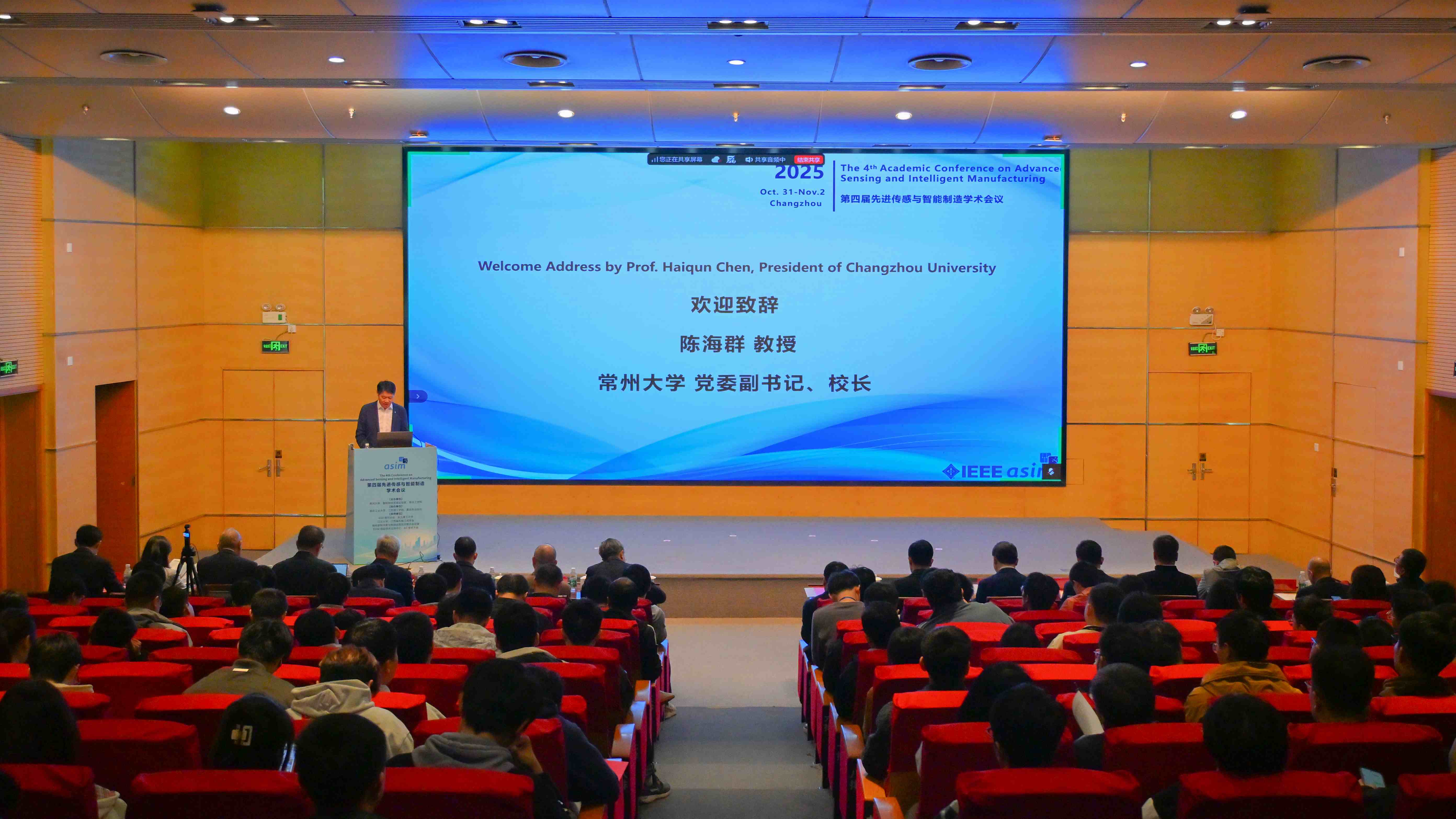 10月31日至11月2日,第四届先进传感与智能制造学术会议(ASIM 2025)在常州大学召开。本次会议由常州大学、智能制造龙城实验室、常州工学院共同主办,江苏理工学院、南京工业大学、爱迩思出版社协办,并获IEEE南京分会、武汉理工大学、江汉大学等多家单位支持。会议积极响应国家制造强国战略,聚焦先进传感与智能制造前沿议题,吸引了来自97家高校、科研机构与企业的200余名专家学者参会,深入探讨该领域的最新进展与发展趋势。智能制造龙城实验室执行主任王永青,西安交通大学米兰理工联合学院执行院长杨树明,南京大学博士生导师李根喜,香港理工大学教授徐宾刚,常州大学党委副书记、校长陈海群出席会议。机械学院院长刘麟主持大会开幕式。