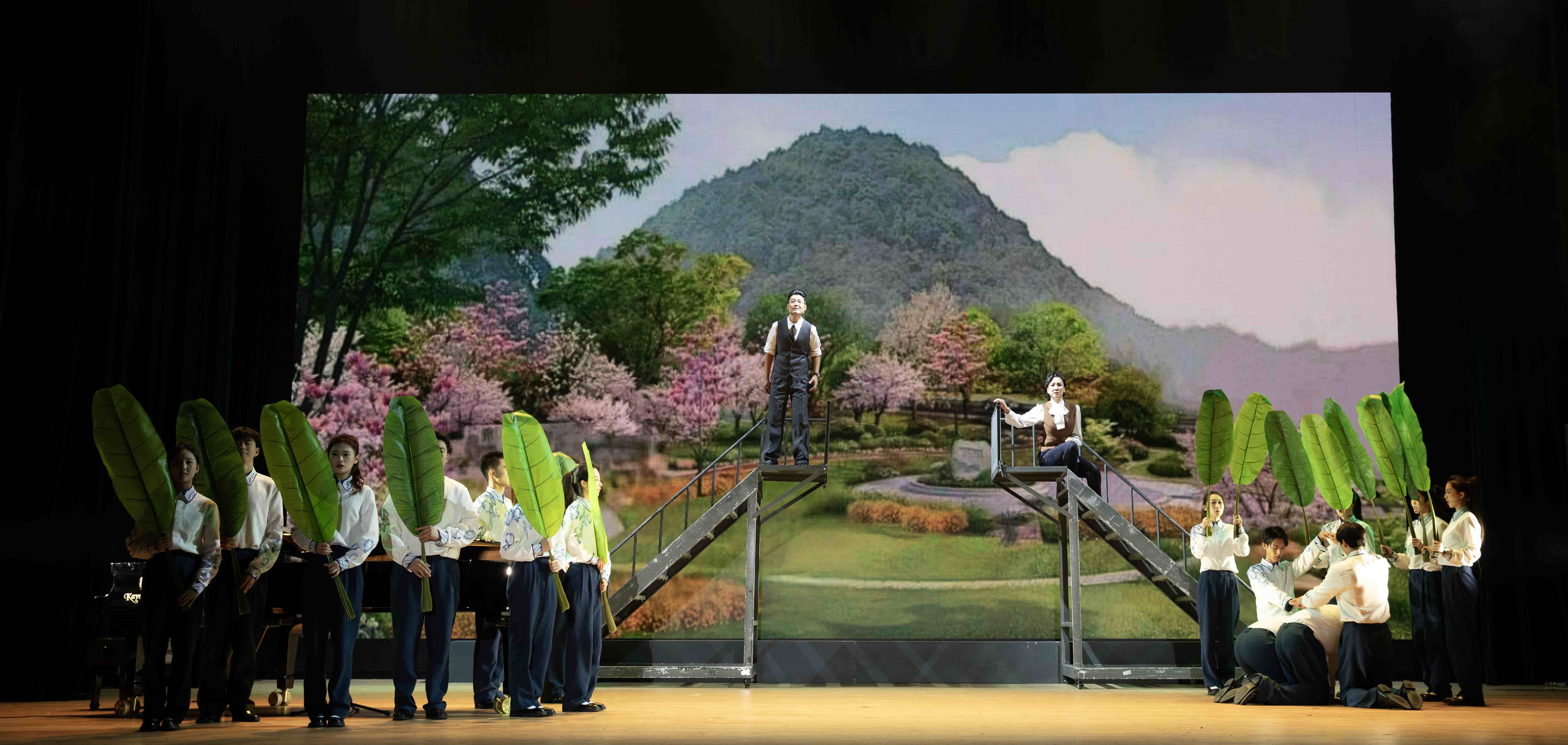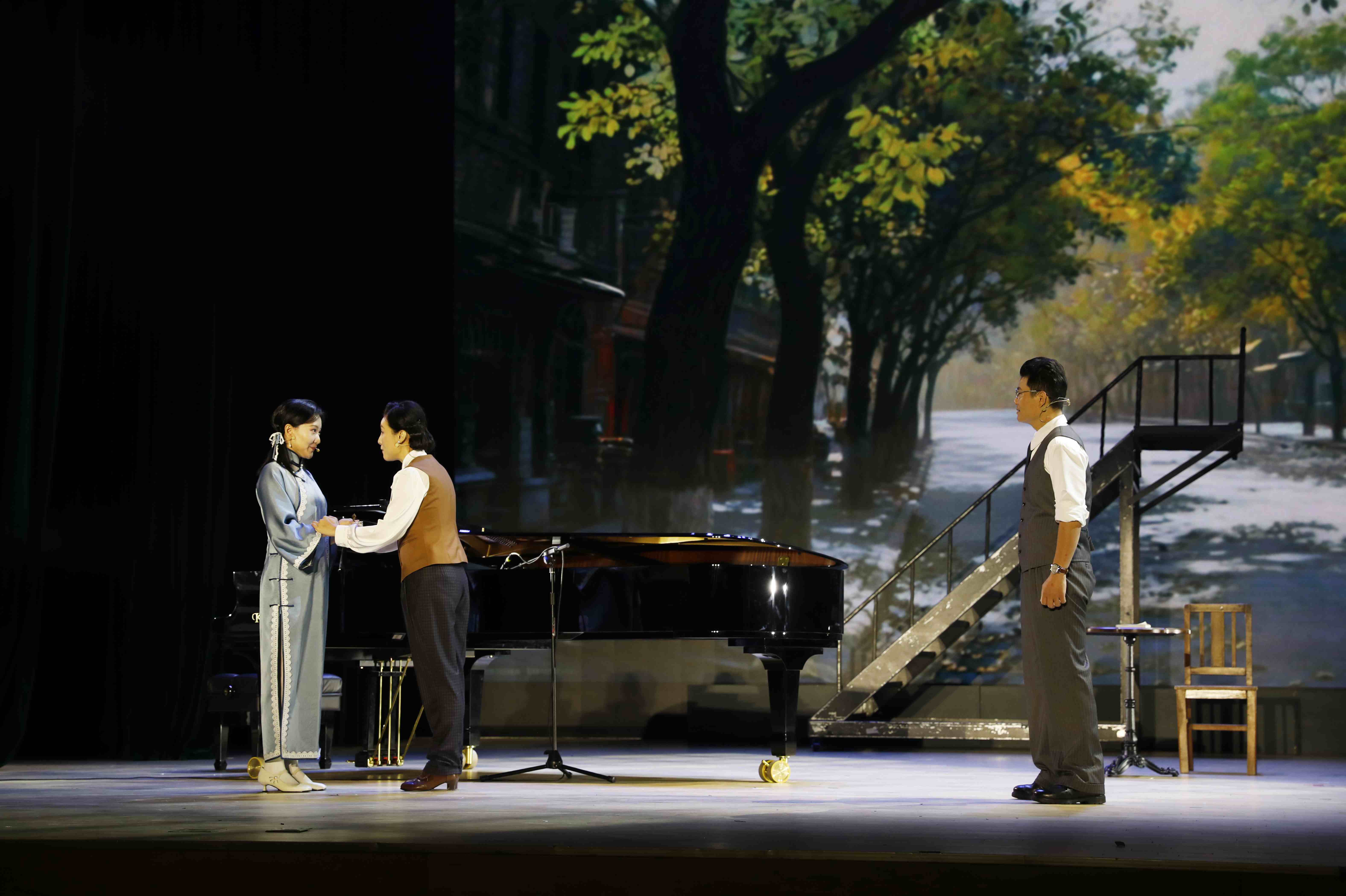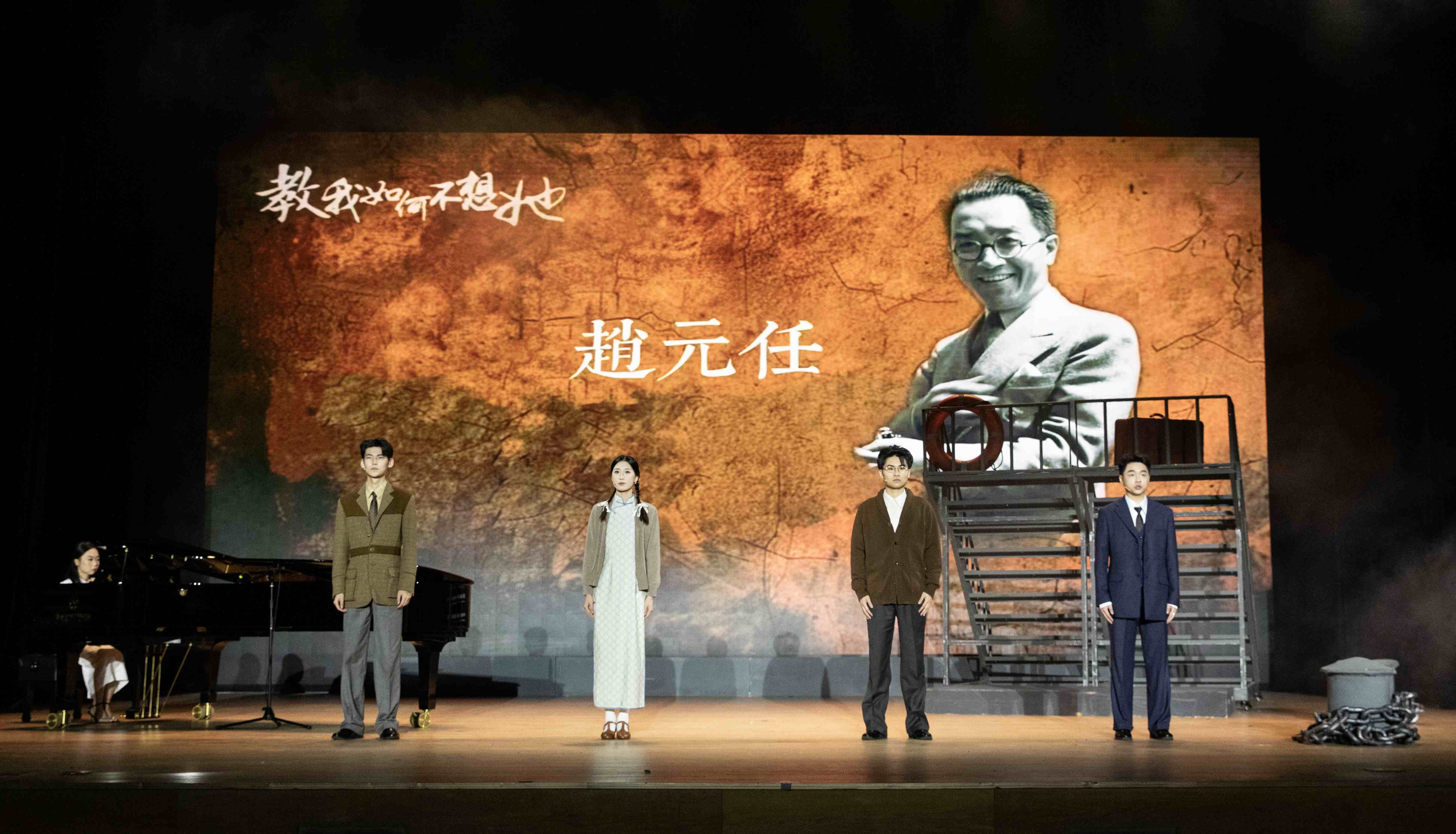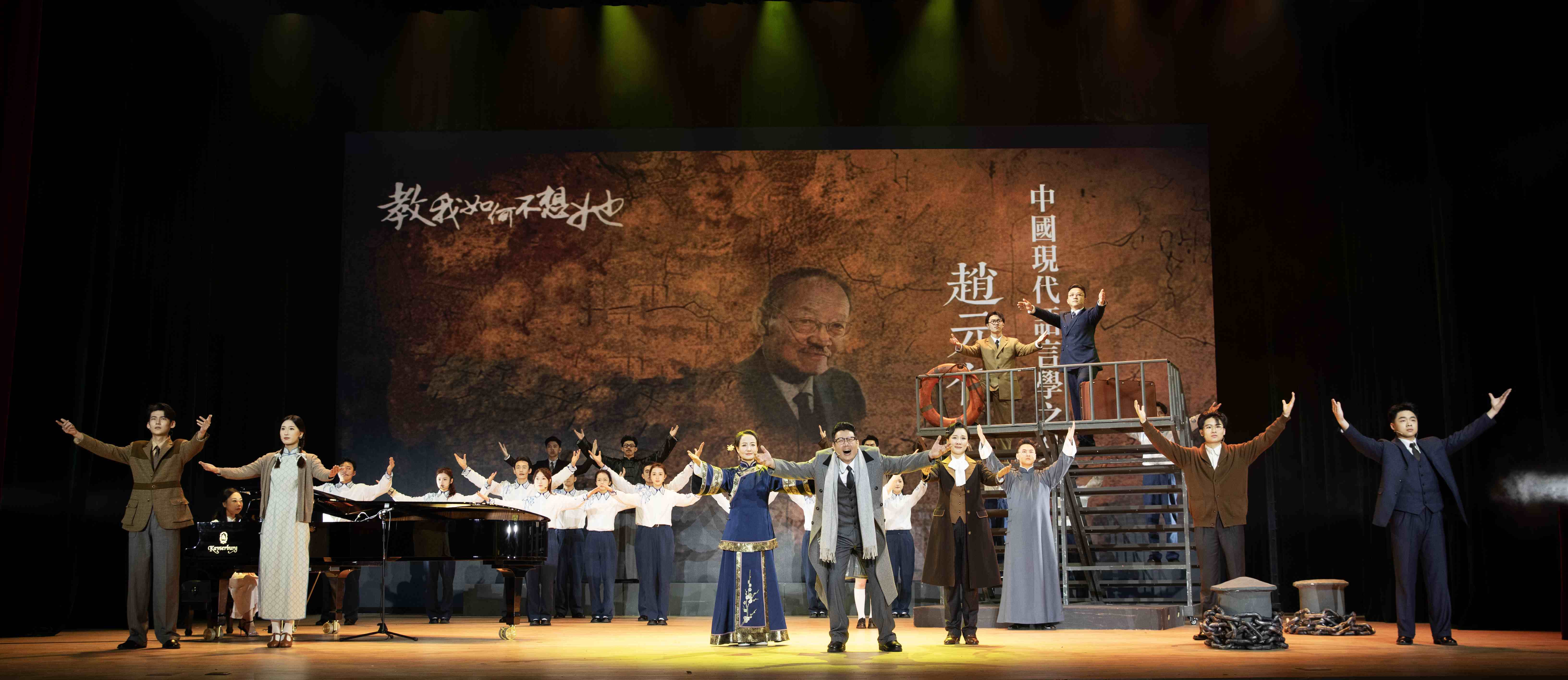 仪式结束后,现场嘉宾观众共同欣赏了由赵元任音乐与戏剧学院师生共同演绎的原创音乐戏剧《教我如何不想她》。全剧围绕四重“想她”的情感主线,层层铺展一代学人的生命历程与家国情怀,精湛的演技和真挚而细腻的情感,交织出一幅跨越时间与地域的生命画卷,也映照出一代知识分子在时代洪流中的情感世界与精神归途。这是一场融合艺术审美、思想引领与文脉焕新的艺术盛宴,更是一次对赵元任先生学术风骨与人文精神的深情致敬。剧目以音乐为脉、以戏剧为体,将语言、旋律与舞台意象有机融合,既彰显了常州地域文化的深厚底蕴和文化影响力,又展现了我校艺术创作的创新活力和价值定位,使观众在沉浸式的审美体验中感受历史温度、思想深度与情感厚度,进一步擦亮了“常州˙教我如何不想她”城市名片。