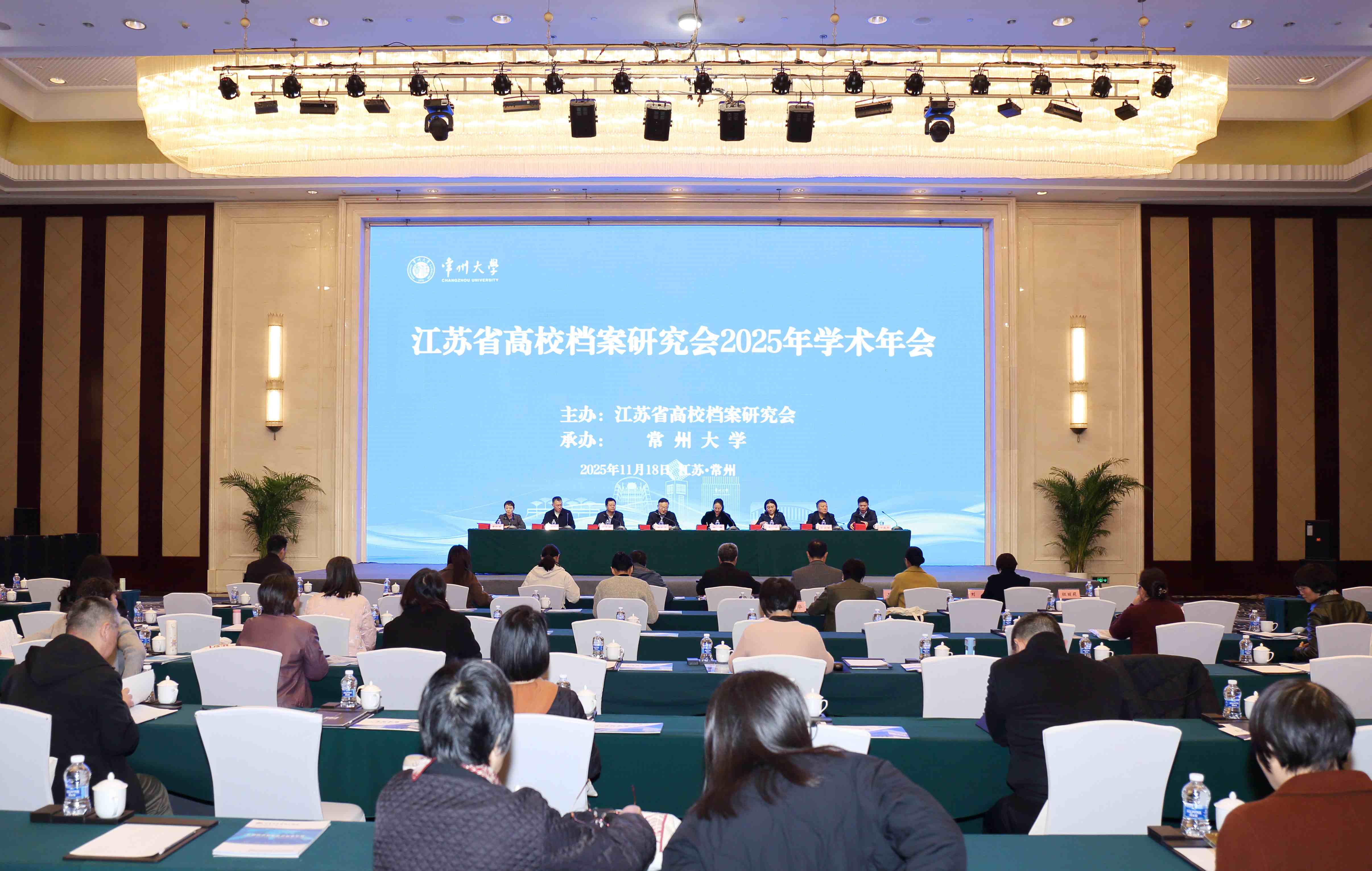 11月18日-19日,江苏省高校档案研究会2025年学术年会在常召开。会议由江苏省高校档案研究会主办,常州大学承办。会议主题是“总结‘十四五’发展经验,擘画‘十五五’奋进蓝图——新时代江苏高校档案事业高质量发展路径探索”。江苏省教育厅副厅长杨树兵,江苏省档案馆副馆长薛春刚,常州大学党委常委、副校长杨琳,常州市档案馆馆长金云江,江苏省高校档案研究会常务副理事长吴玫,以及来自全省各高校档案馆(室)的170余位档案工作者出席会议。江苏省高校档案研究会副理事长兼秘书长黄松莺主持开幕式。