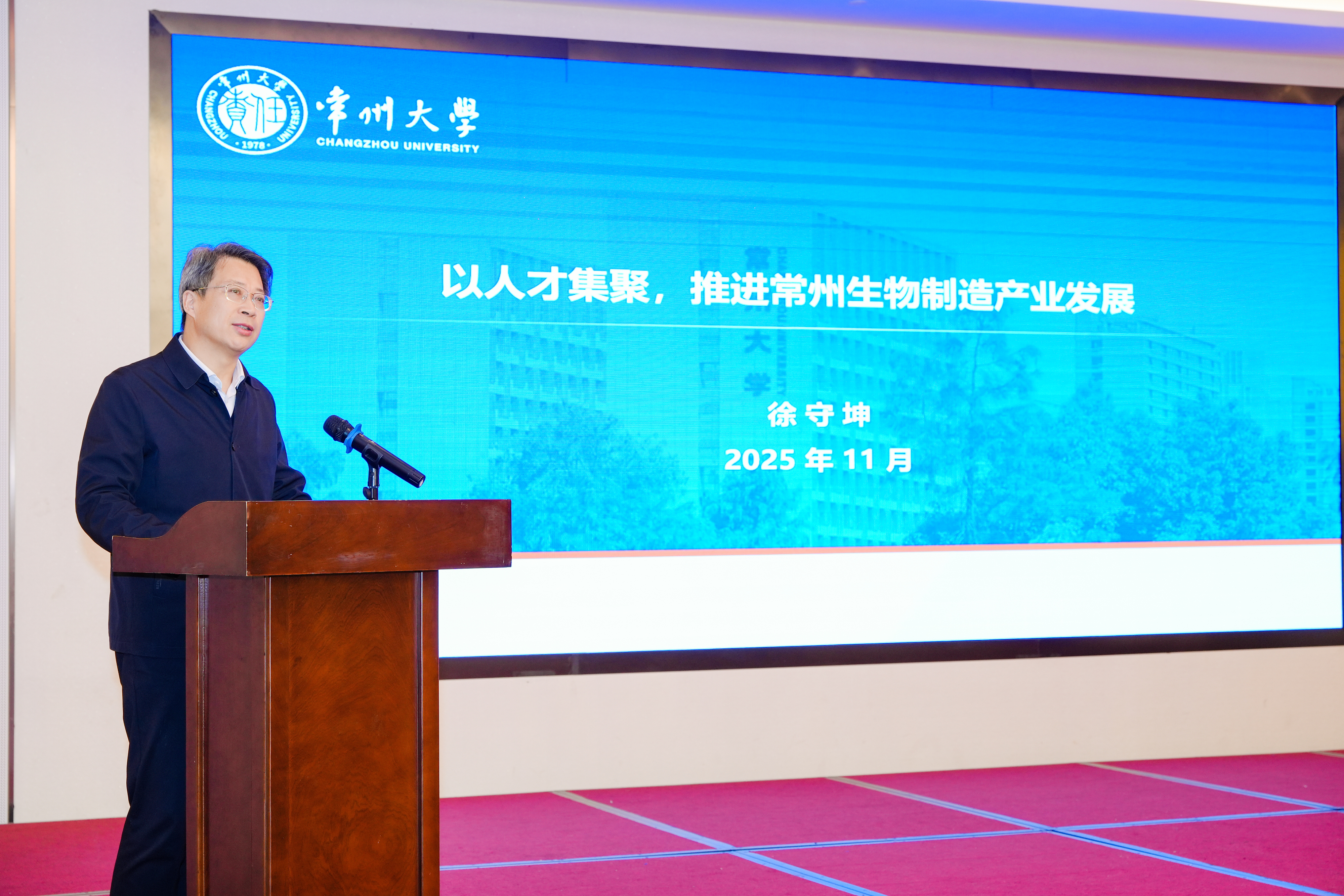 我校党委书记徐守坤作“以人才集聚推进常州生物制造产业发展”经验分享。他围绕国内外生物制造发展趋势、常州产业基础及学校服务实践,重点介绍了产教融合、学科交叉创新等方面的探索,并表示学校将深入践行习近平总书记关于教育科技人才一体发展的重要论述,聚焦高素质复合型人才培养与产学研协同创新,为生物制造产业升级及新质生产力发展赋能。
