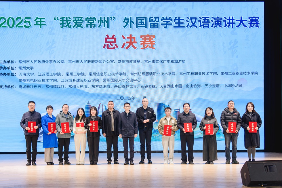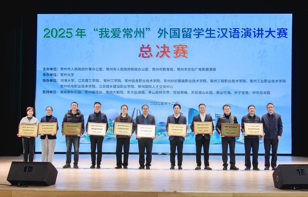 12月18日下午,2025年“我爱常州”外国留学生汉语演讲大赛总决赛在我校西太湖校区立艺楼恺撒堡音乐厅举办,比赛由常州市人民政府外事办公室、常州市人民政府新闻办公室、常州市教育局和常州市文化广电和旅游局主办,常州大学承办。常州市人民政府副秘书长姚澄,常州市人民政府外事办公室主任张宇,常州大学党委常委、副校长李亚飞出席活动,常州市相关市局负责人,在常10所高校国际学院负责人,2所高中负责人以及800余名中外大学生参加活动。