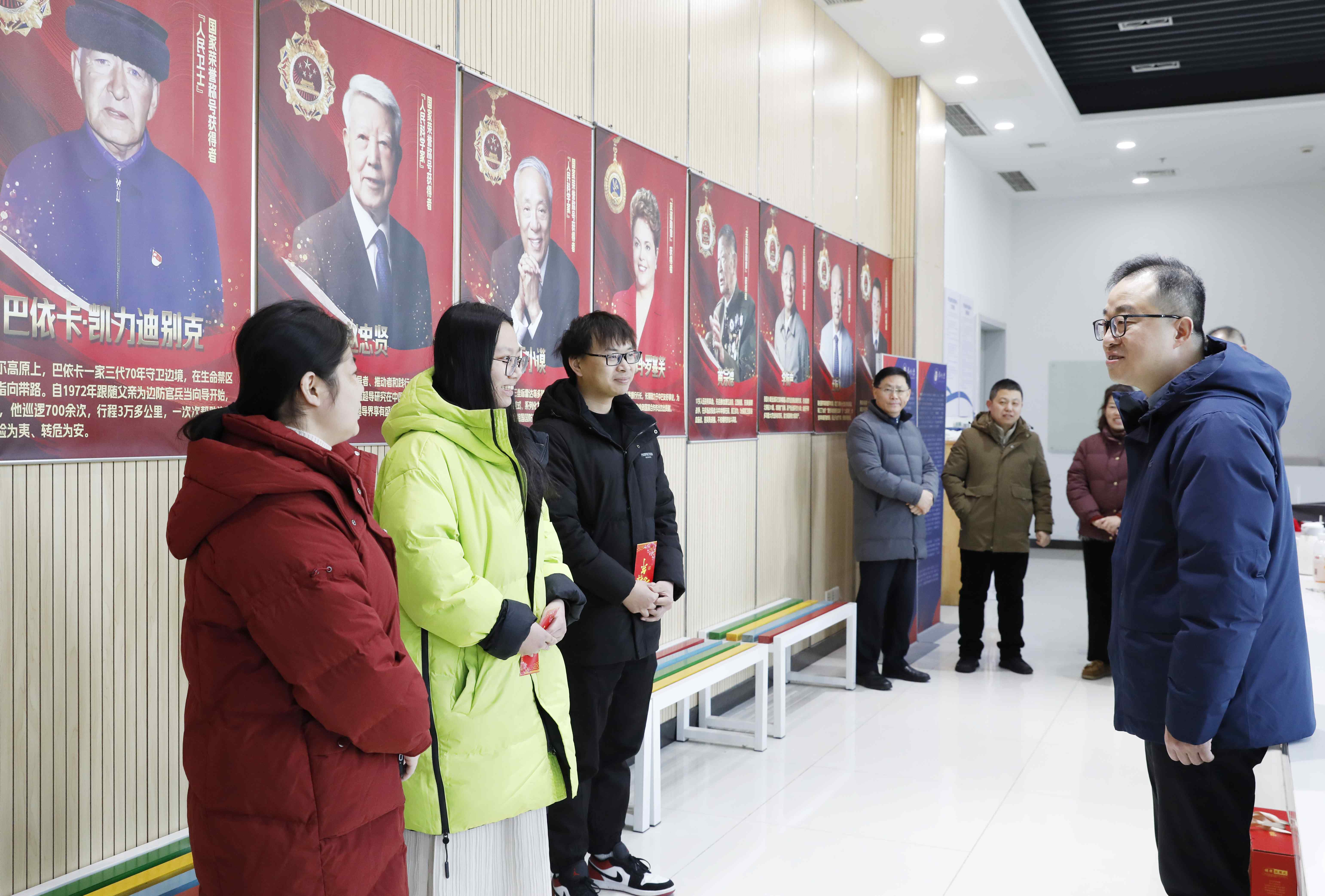 在勤工助学岗位上,校领导与同学们围站交流,亲手递上满载心意的新春大礼包,现场暖意融融。周刚详细询问假期助学岗位的工作内容,关切了解同学们在校学习生活情况,叮嘱大家合理规划假期时间,既要精进学业、提升综合能力,也要常与家人沟通联络,让亲情陪伴为成长添温。他强调,学校始终把留校学生需求放在心上,将全力做好各项服务保障,从学习支持到生活便利,从安全保障到情感关怀,切实解决大家的后顾之忧,确保每一位留校学生都能度过一个平安、温馨、充实的寒假。