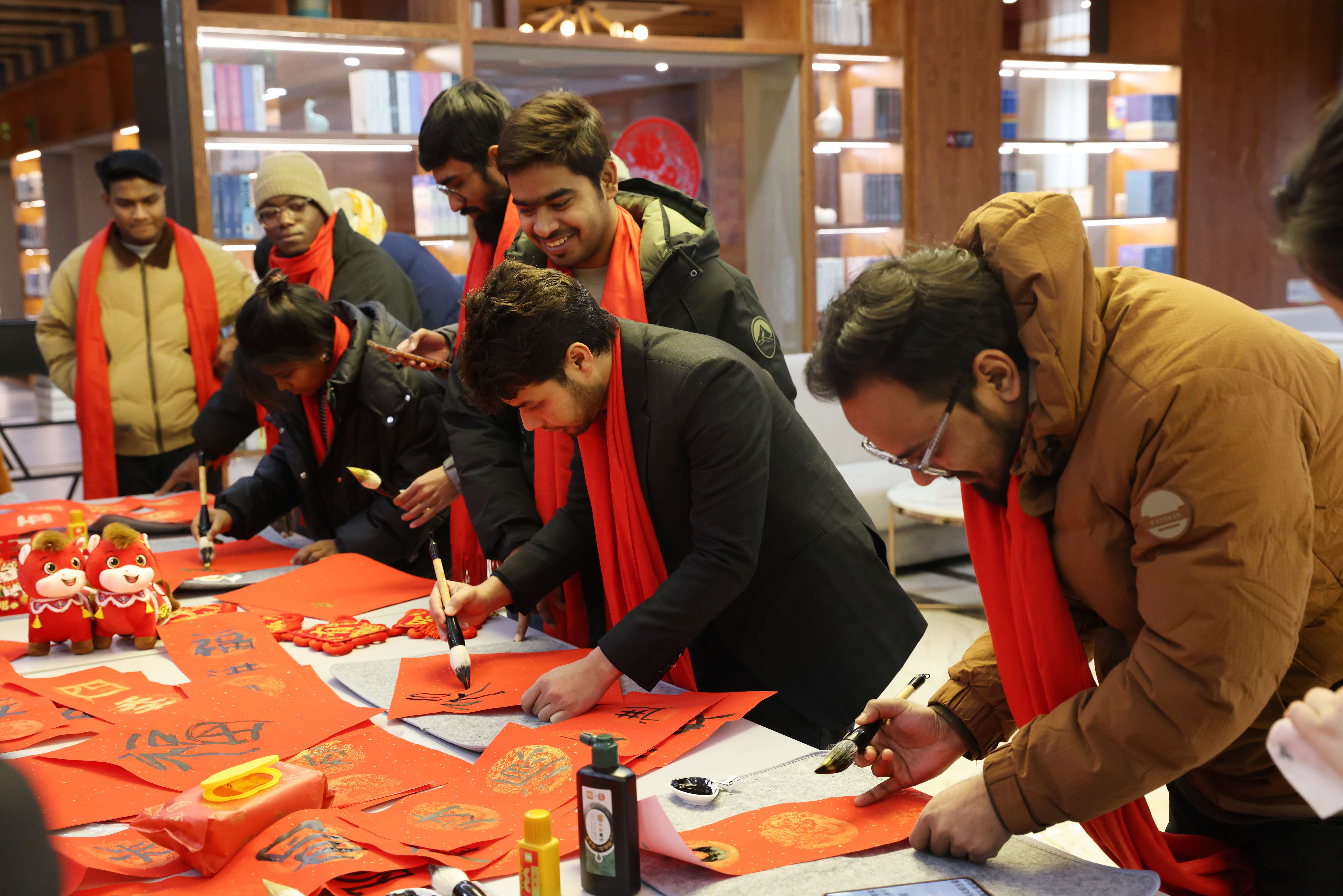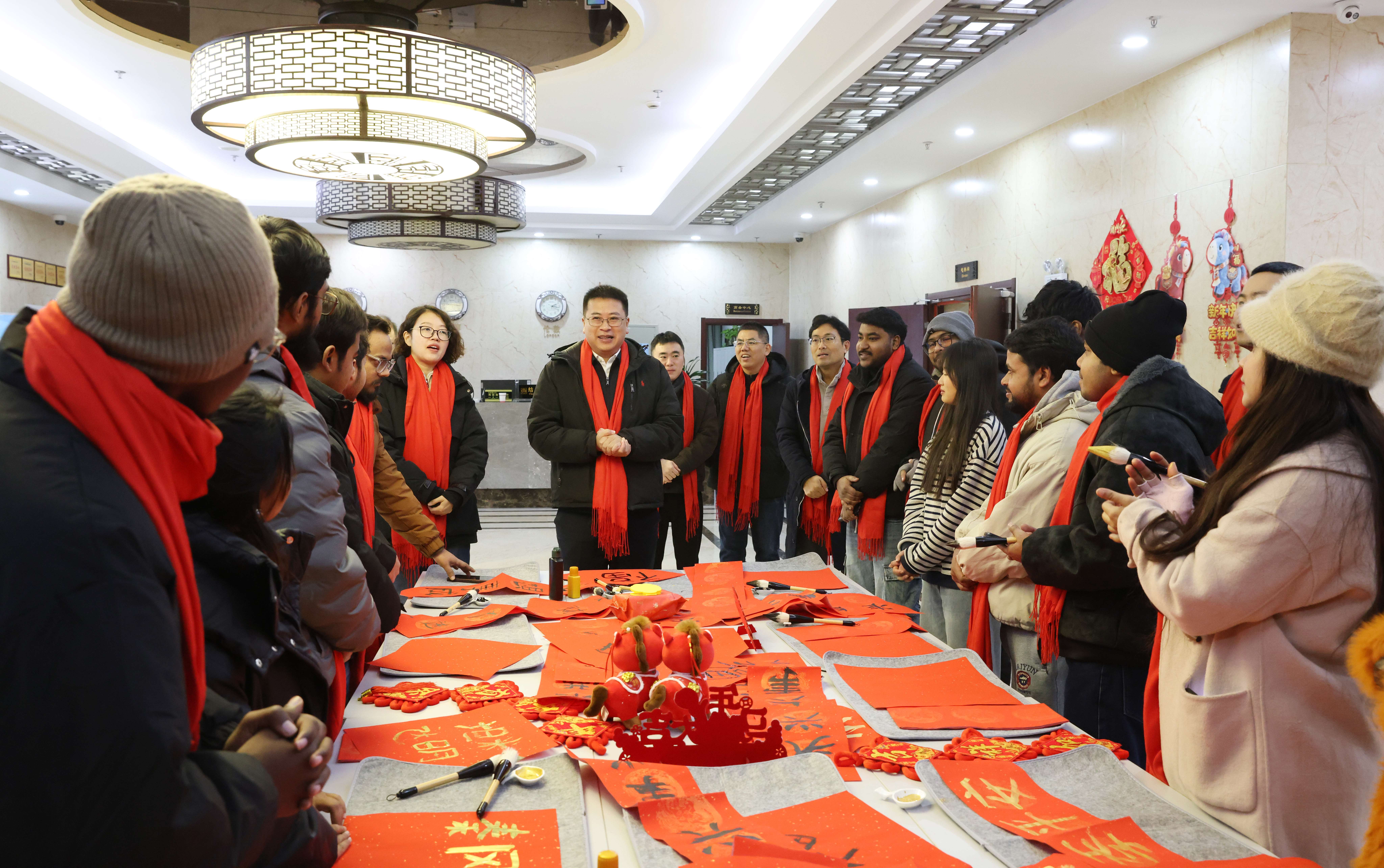 领导们与留学生们一起写对联、写福字,沉浸式感受中华传统节日的独特魅力。留学生们纷纷表示,学校无微不至的关怀与贴心服务让他们倍感温暖、深受鼓舞,将牢记学校的殷切期望与嘱托,勤奋学习、奋勇争先,努力成为中外文化交流的友好使者,为促进中外民心相通、深化国际友谊贡献力量。