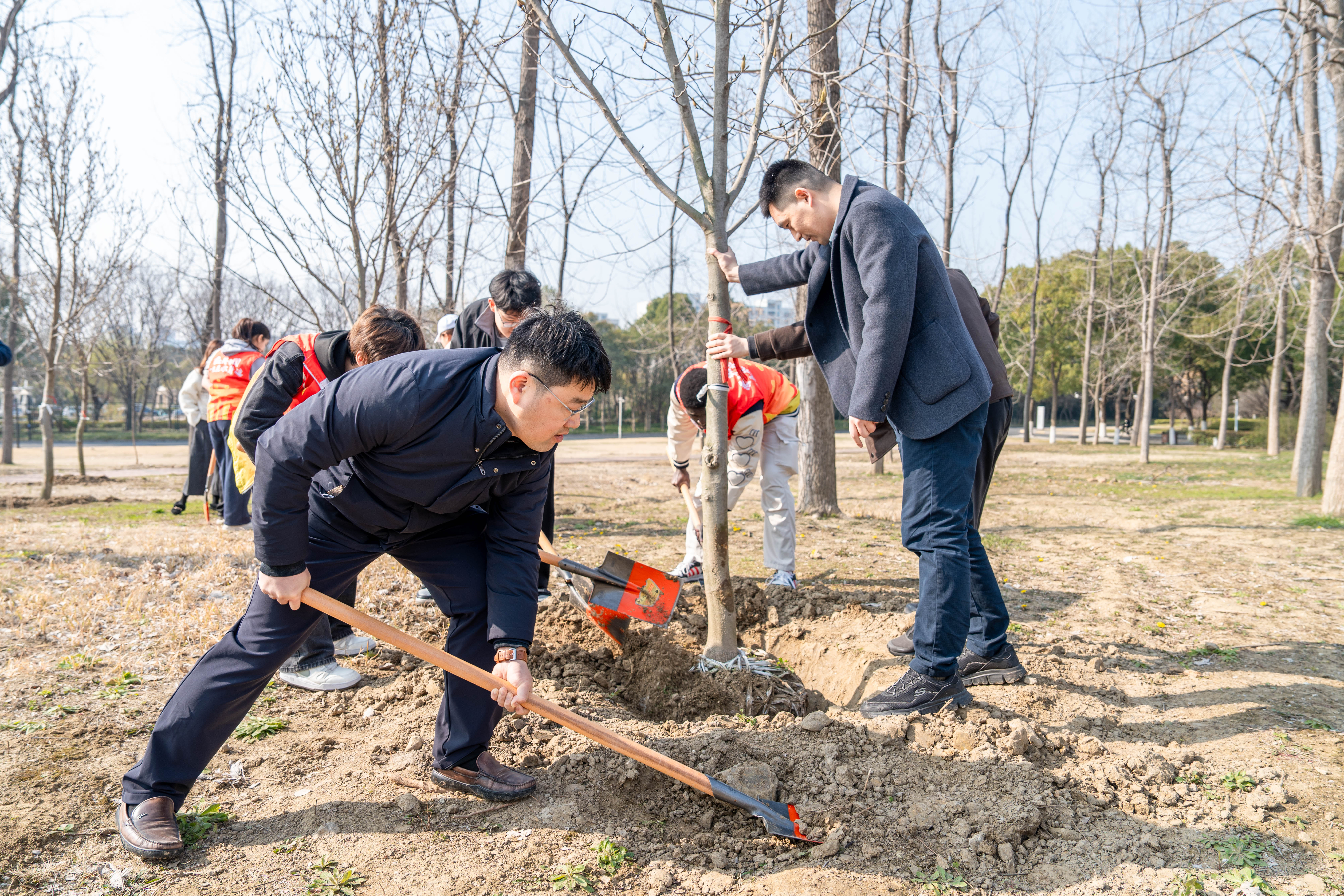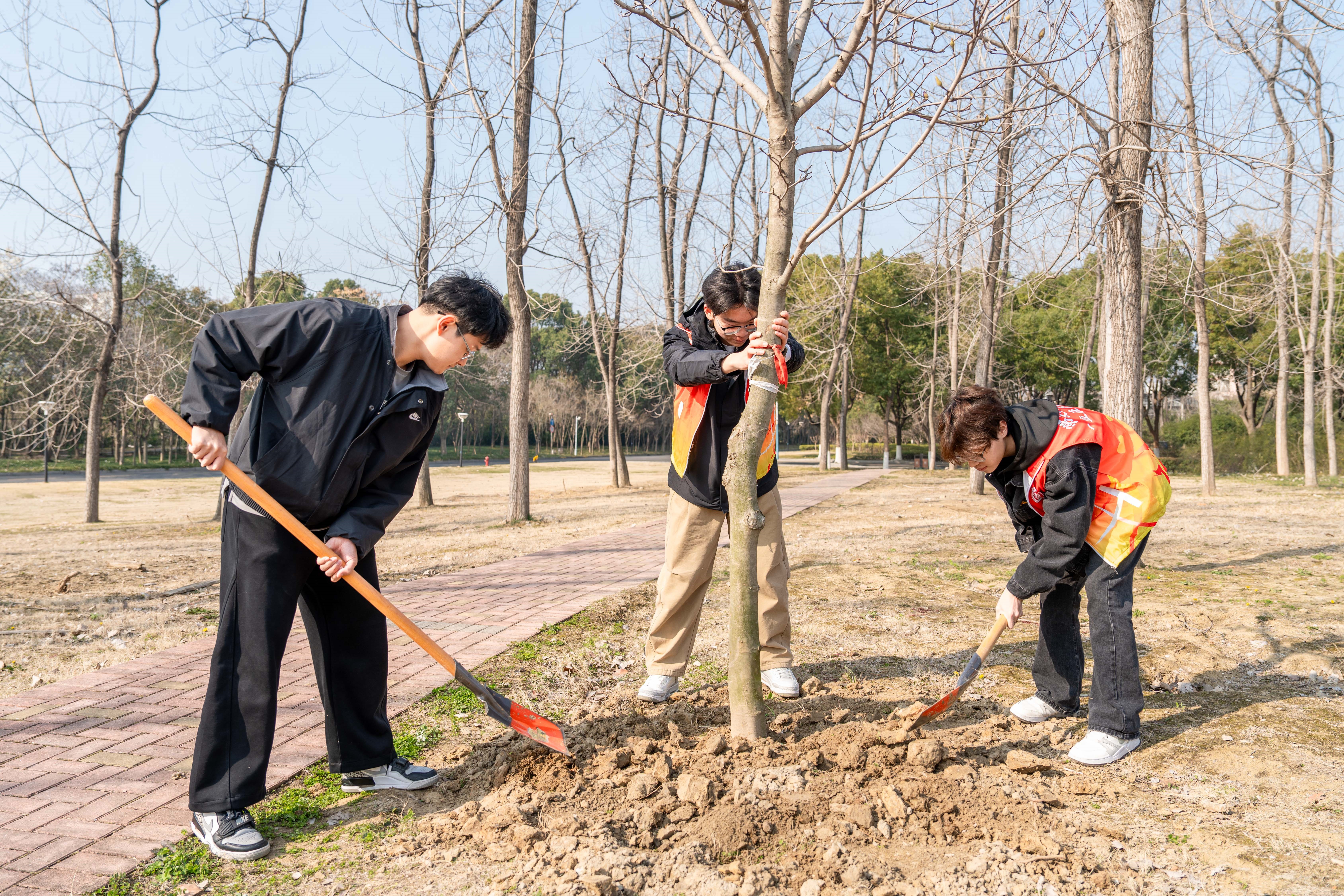 此次活动选取了常州市市树——玉兰树进行栽种。玉兰树象征着高洁、向上和感恩,也寓意着常州大学扎根常州、服务地方的坚定决心和深厚情怀。植树现场,师生们手持铁锹、水桶,热情高涨地投入到劳动中,扶苗、培土、浇水,每一个步骤都认真细致,现场热火朝天。从“深坑实土”的植树要领中,师生们共同体悟“责任”校训的深意:向下扎根、向上生长,在劳动中学会担当、在合作中学会创造。